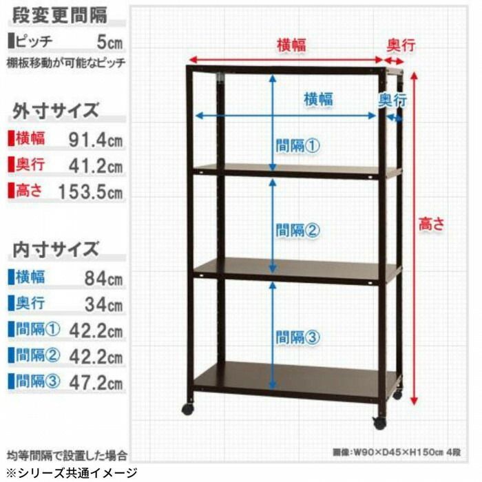 前方の支柱穴が少なく、穴を小さくしたスマートなスチールラックです。中段の変更が簡単です。