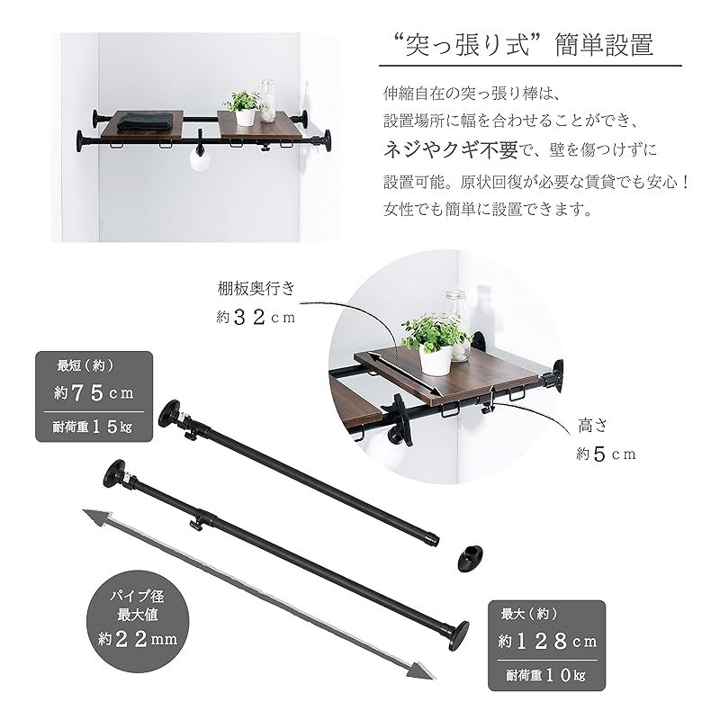 好きな場所に簡単に設置できる、突っ張りデザインラック。