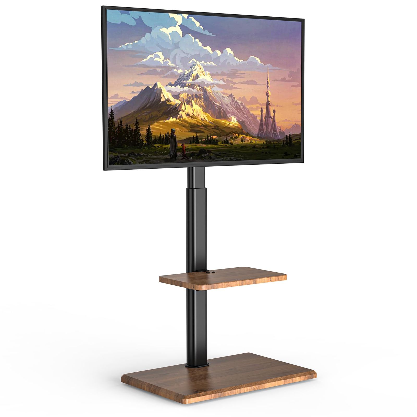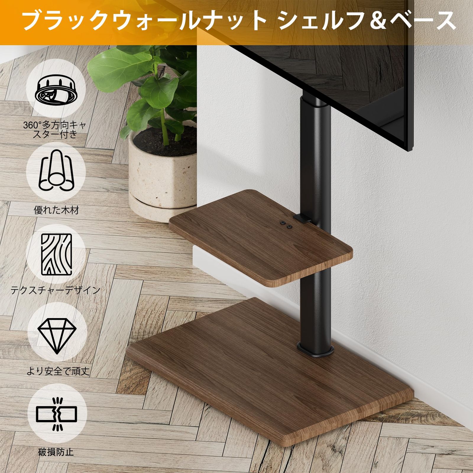 FORGING MOUNT テレビスタンド 隠しキャスター付き 壁寄せテレビスタンド 26~65インチ対応 耐荷重40kg TVスタンド キャスター付き 自立式 壁寄せ ハイタイプ 棚板付きテレビ台 VESA規格400×400mm 高さ調節 左右首振り 家用/業務用 ウォルナット