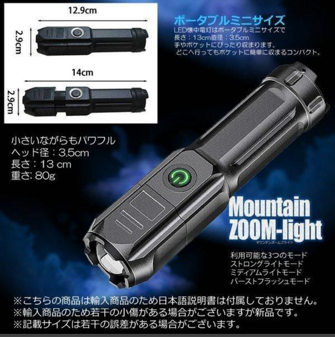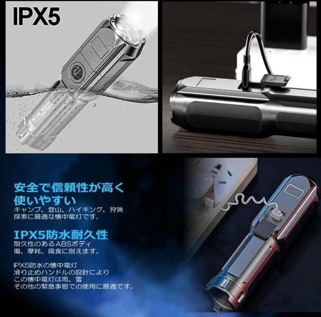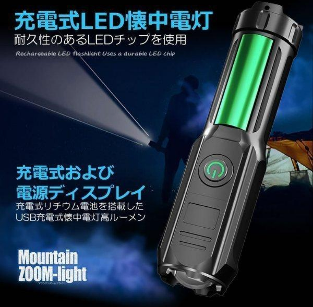 ズーミングライト 懐中電灯 広範囲 USB充電式 LED 小型 夜道 登山