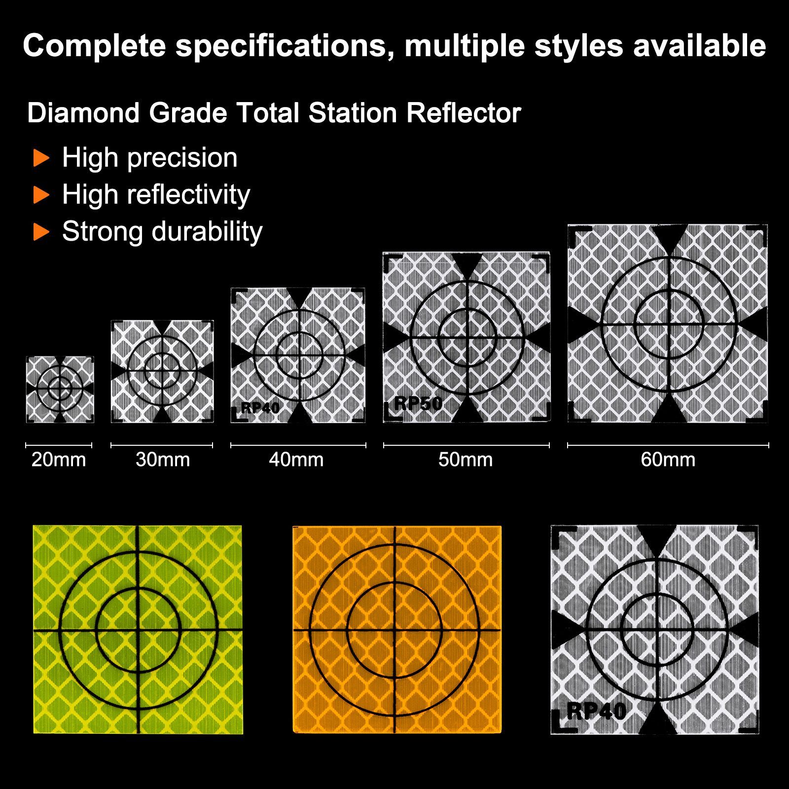 サイズ - ダイヤモンドグレードの反射測量トータルステーションでは60 mm x 60 mmが対象。
