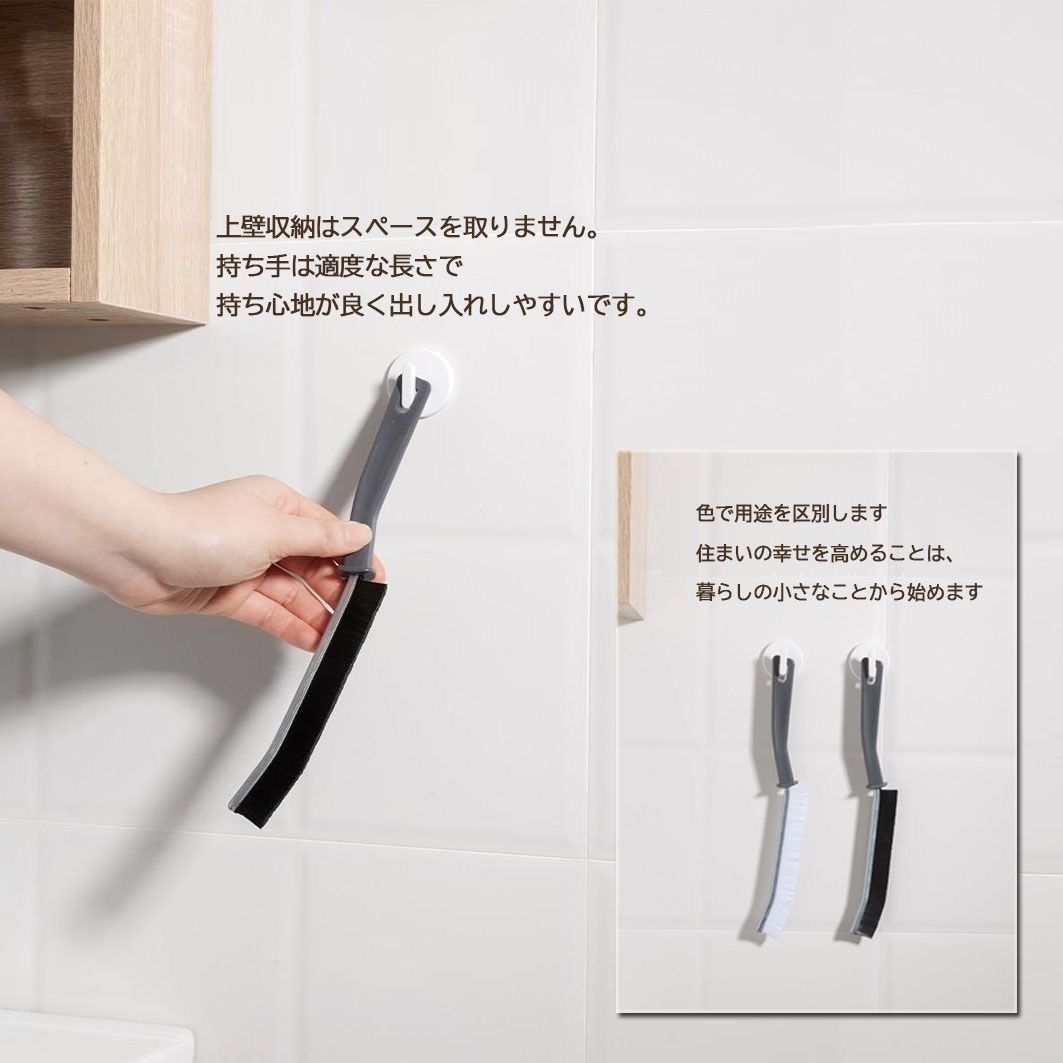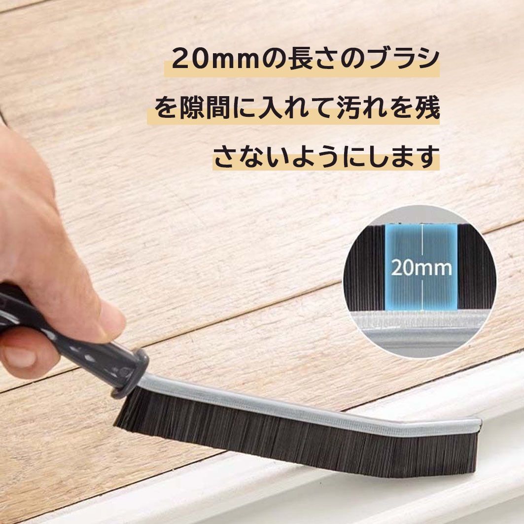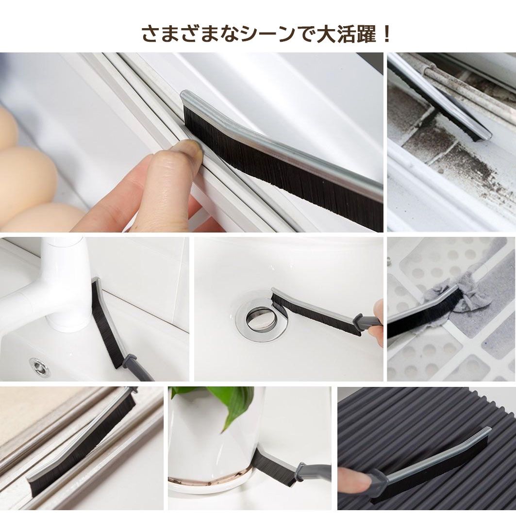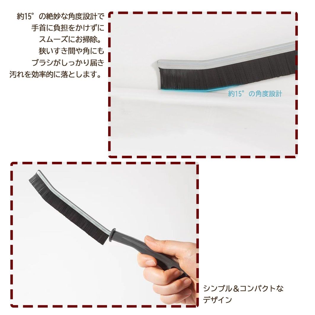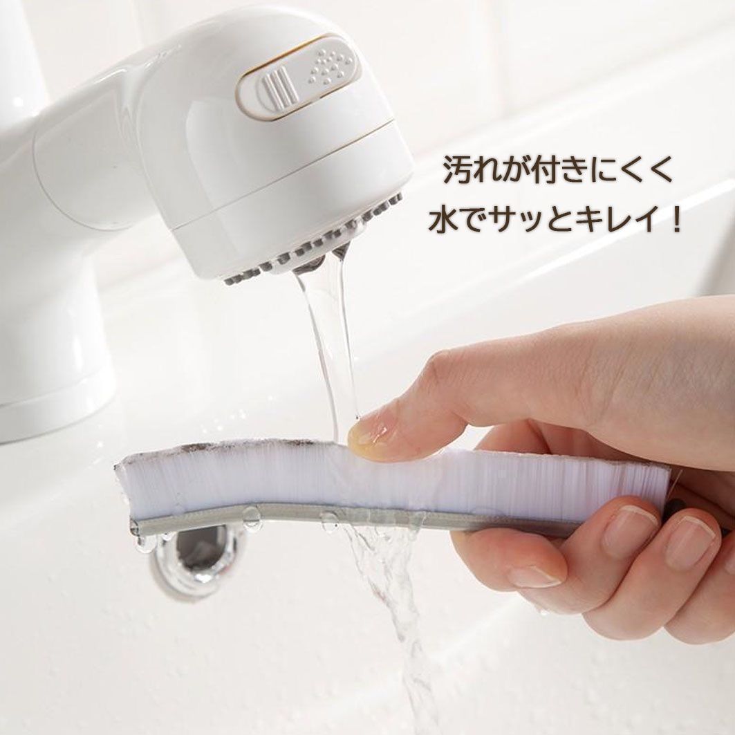 ブラシの先端が曲がっておりJの字のような形になっています。すき間にしっかりとフィットするので、細い隙間や掃除しづらい角などの汚れもしっかりときれいにします。