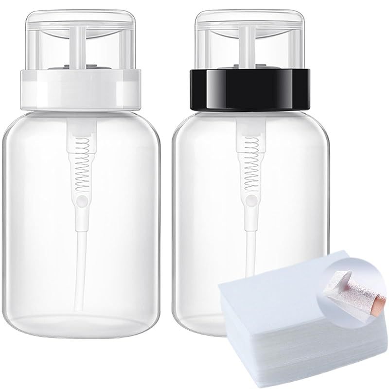 商品名:Seiunn ネイルクリーナーボトル 空ポンプ ボトル 【200ml 2個セット】 ネイルリムーバー容器 ポンプディスペンサー アルコールボトル 液体ボトル 片手で出せる 押し下げ式 透明 50枚ネイルワイプ 付き (黒と白)
