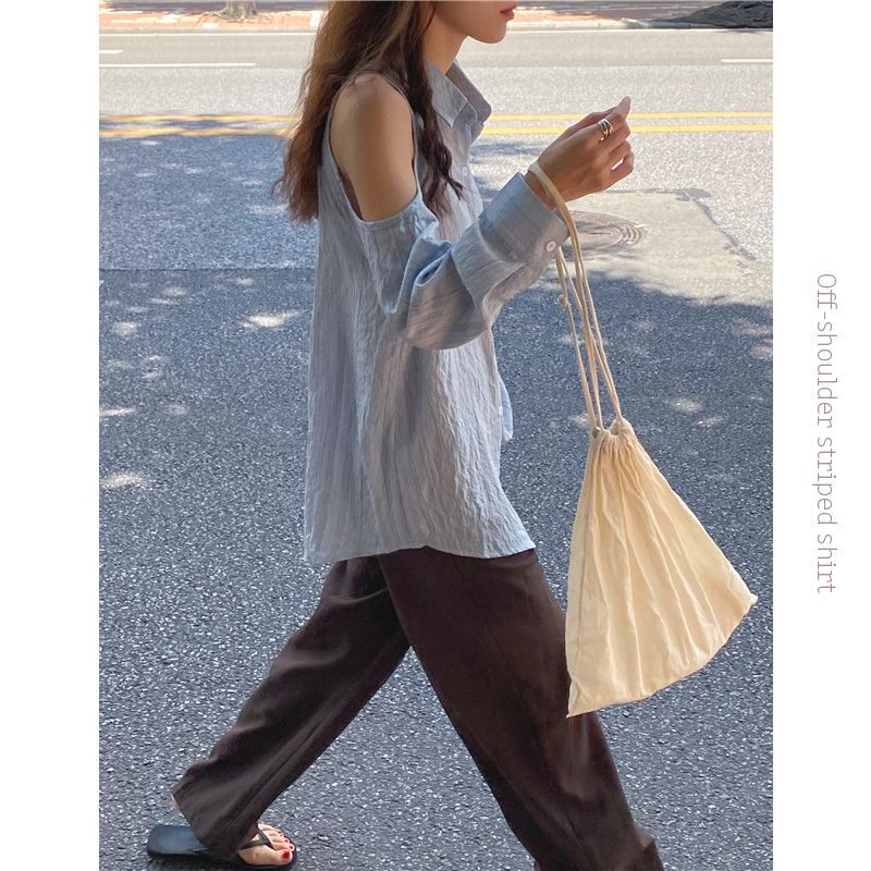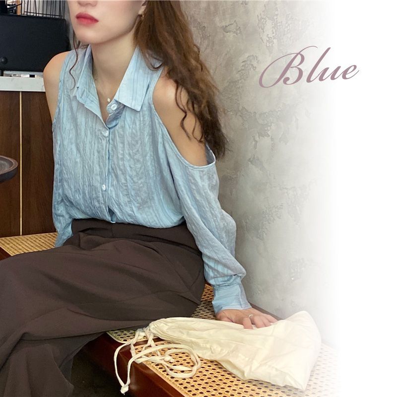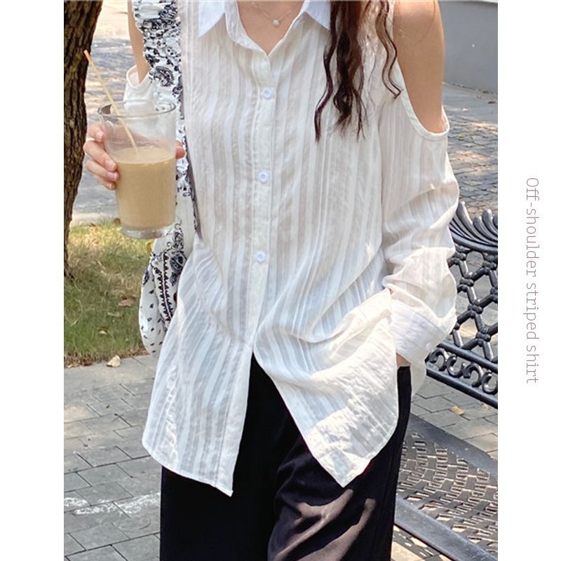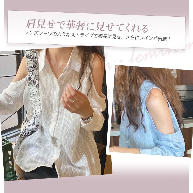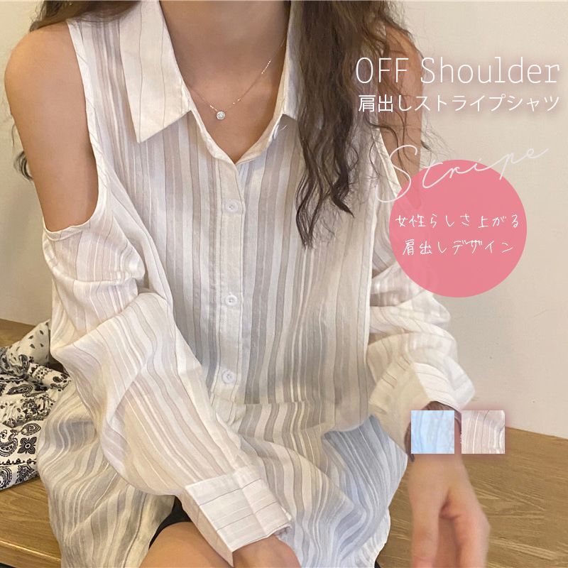 オフショルダー シャツ 長袖 レディース ボタンダウン ビッグサイズ インナー ワンピース 肩出し 肩見せ シャツワンピース