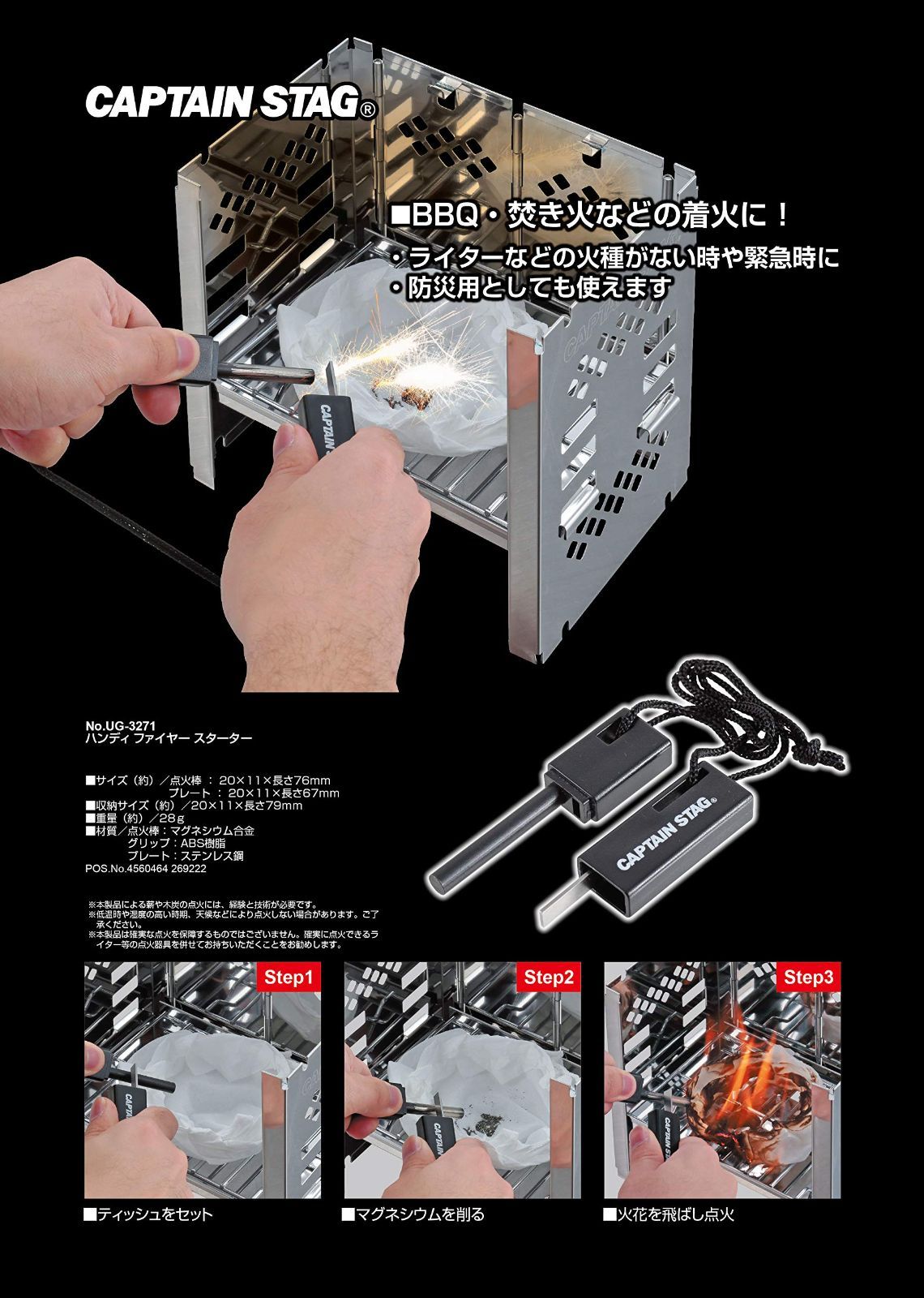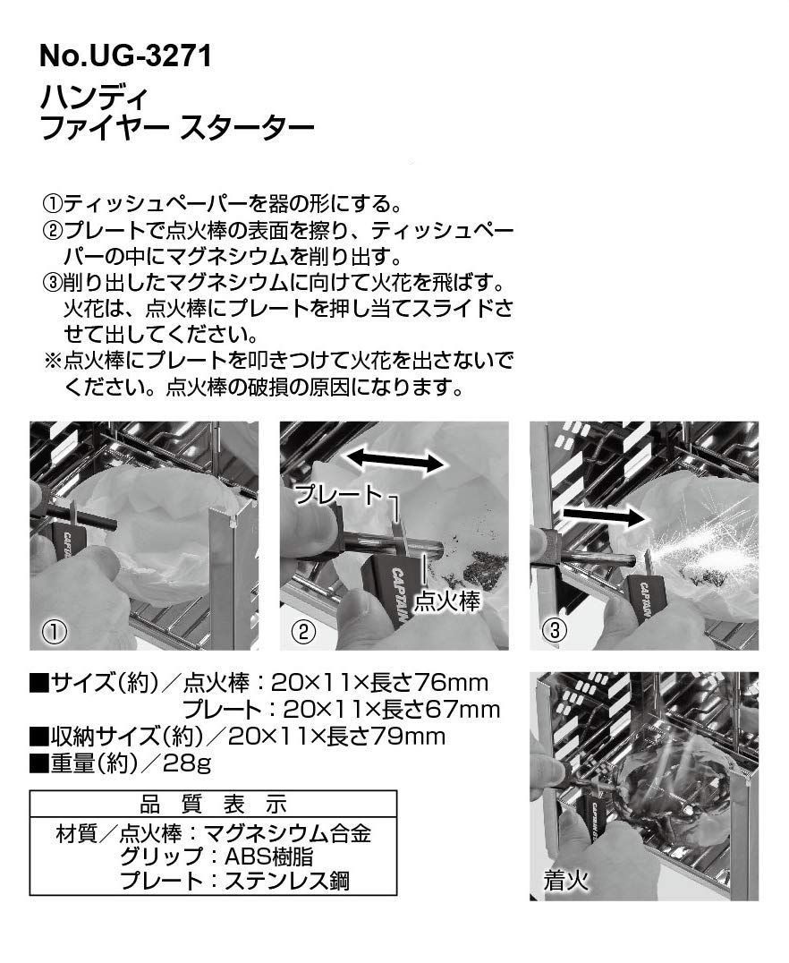 ■素材・材質:点火棒:マグネシウム合金 / グリップ:ABS樹脂 / プレート:ステンレス鋼