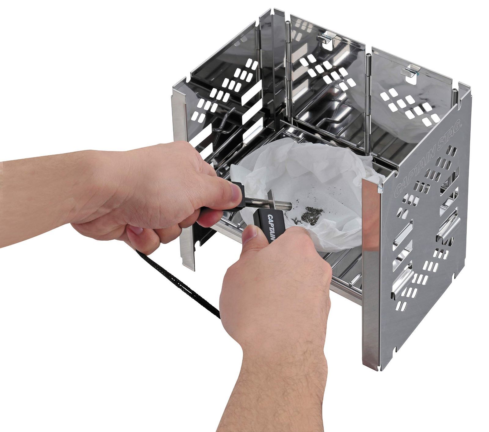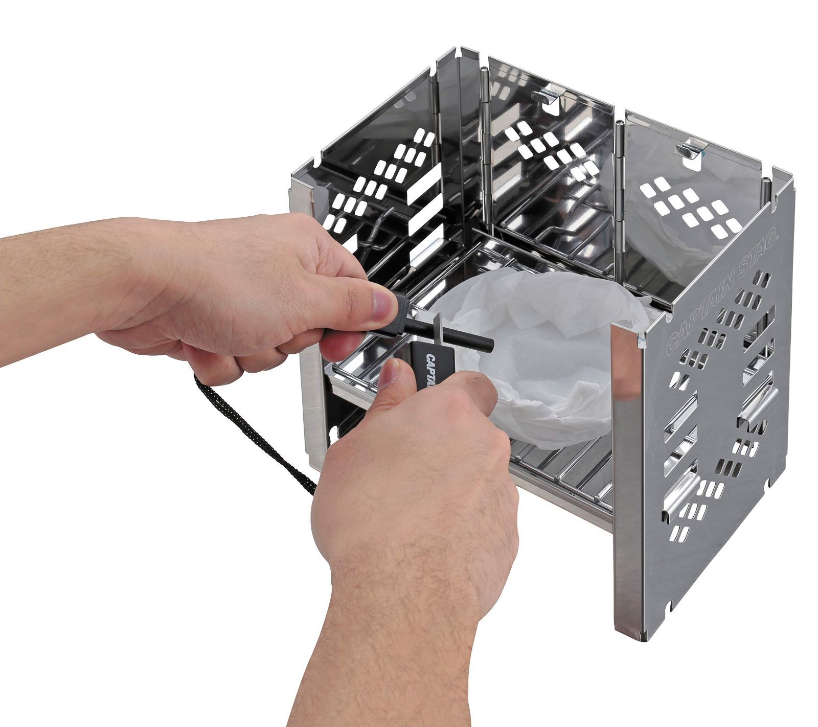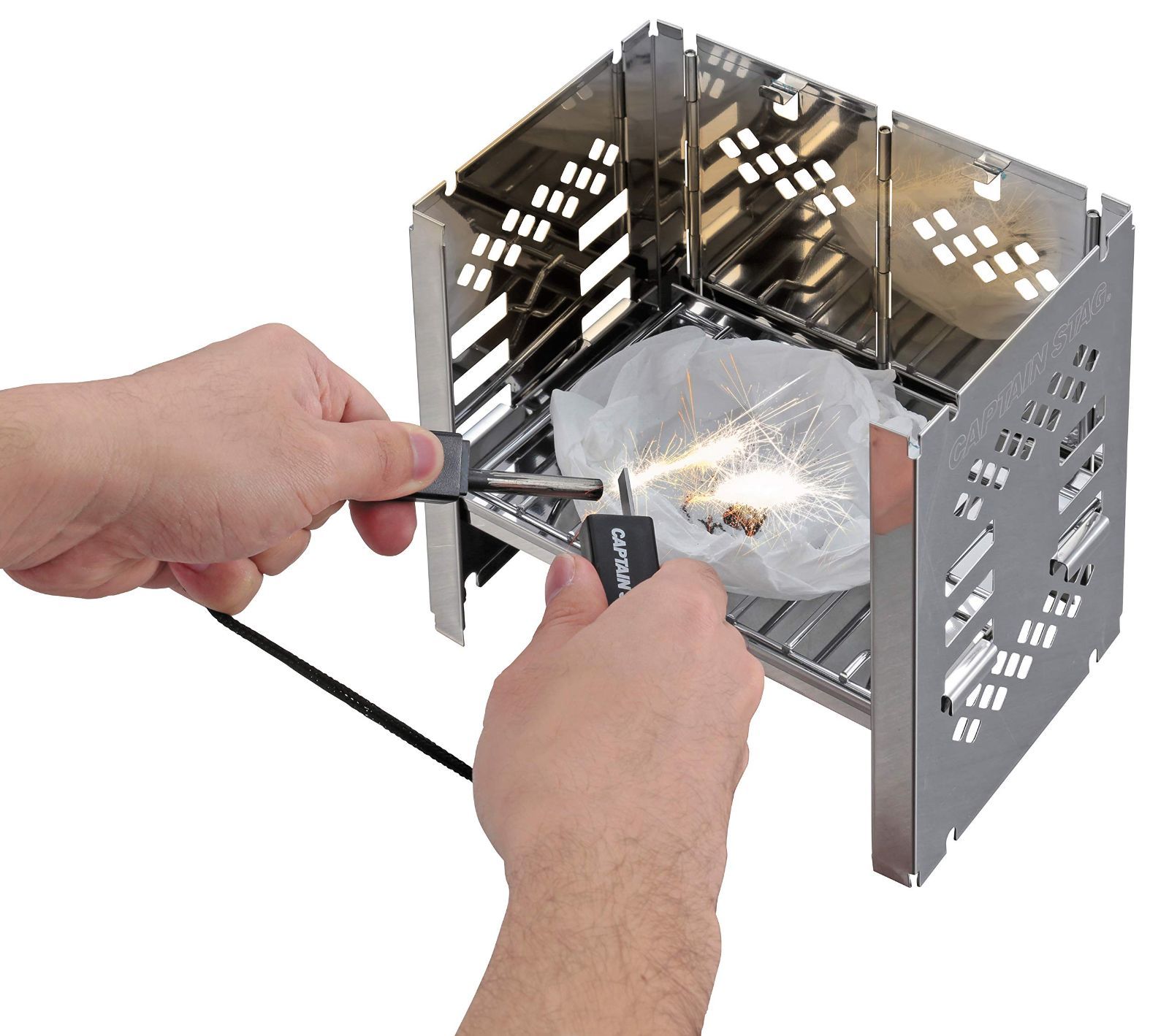 ●ティッシュをセット、マグネシウムを削り、火花を飛ばし点火できる。