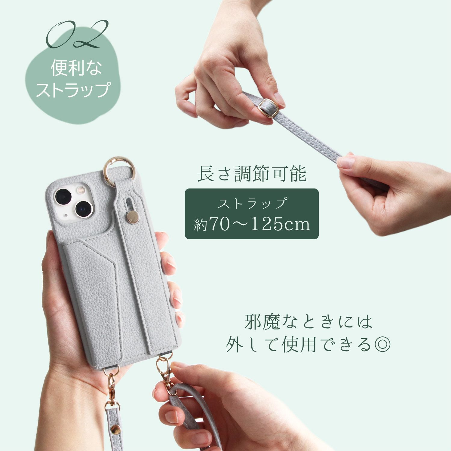 スマホひとつでお出かけOK!ICカードやクレカを収納できるポケット付き、さらにスタンド機能&肩掛け対応で、両手が空いて身軽&快適なお出かけスタイルに