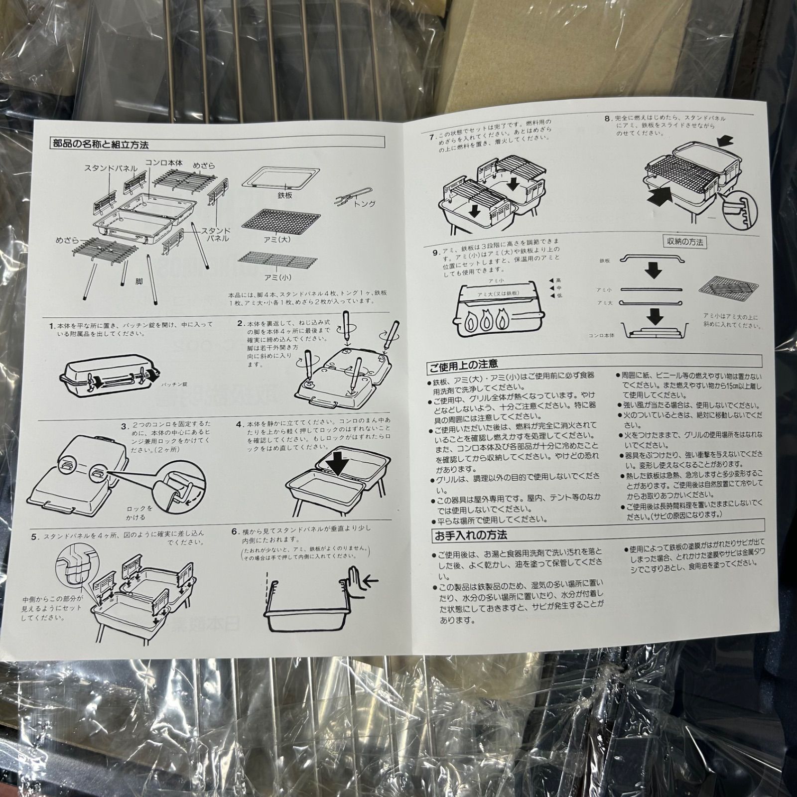 バーベキューグリルは箱に入った状態で新品未開封でした。写真撮影の為開封致しました。