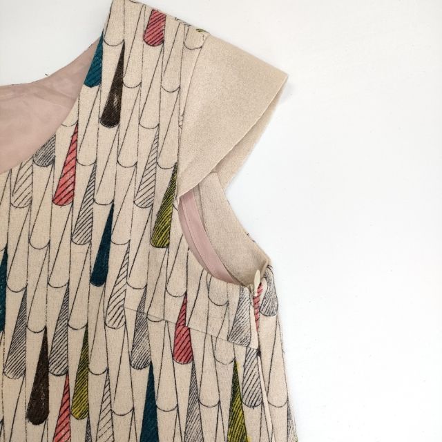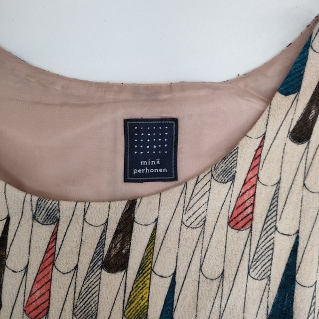 5-1004T∞mina perhonen sunny rain ウール La3458 半袖ドレス ワンピース ベージュ マルチカラー ミナペルホネン 267533
