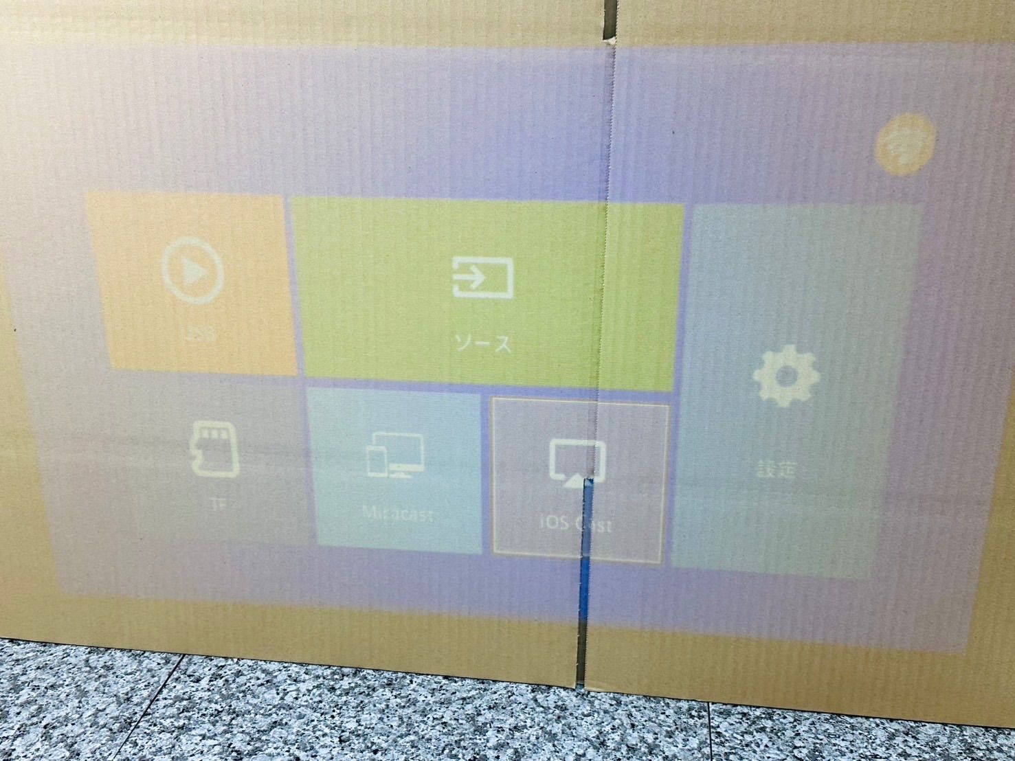 白い壁などがないため段ボールでの映像画面となりますがご了承ください