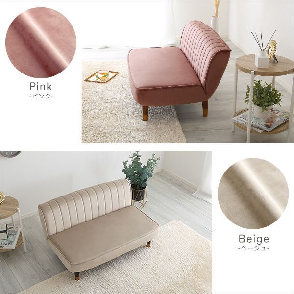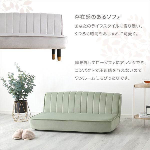 大人かわいいインテリア ベロア調の脚付きローソファ!