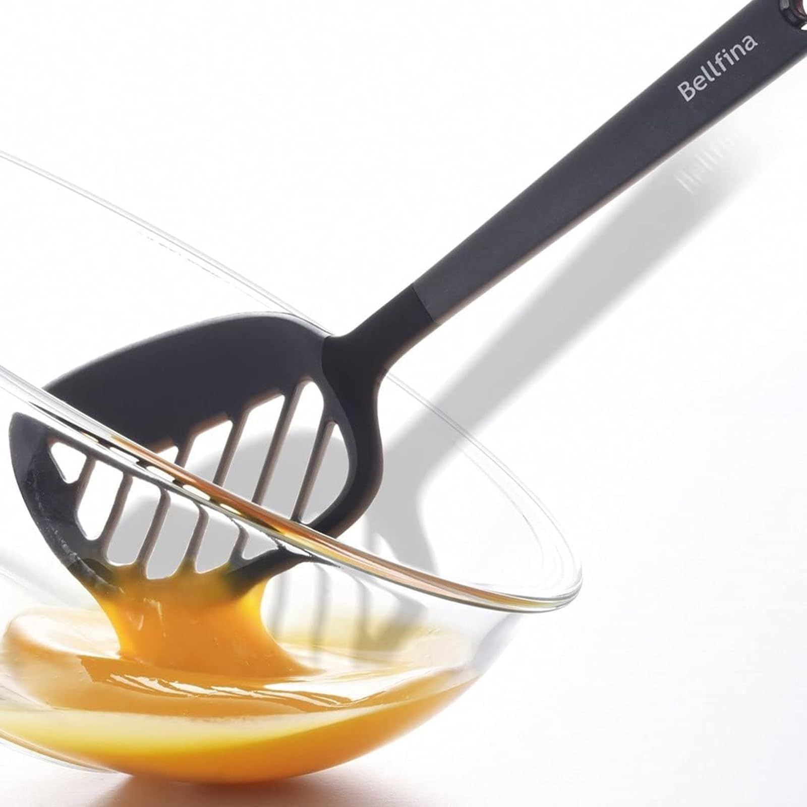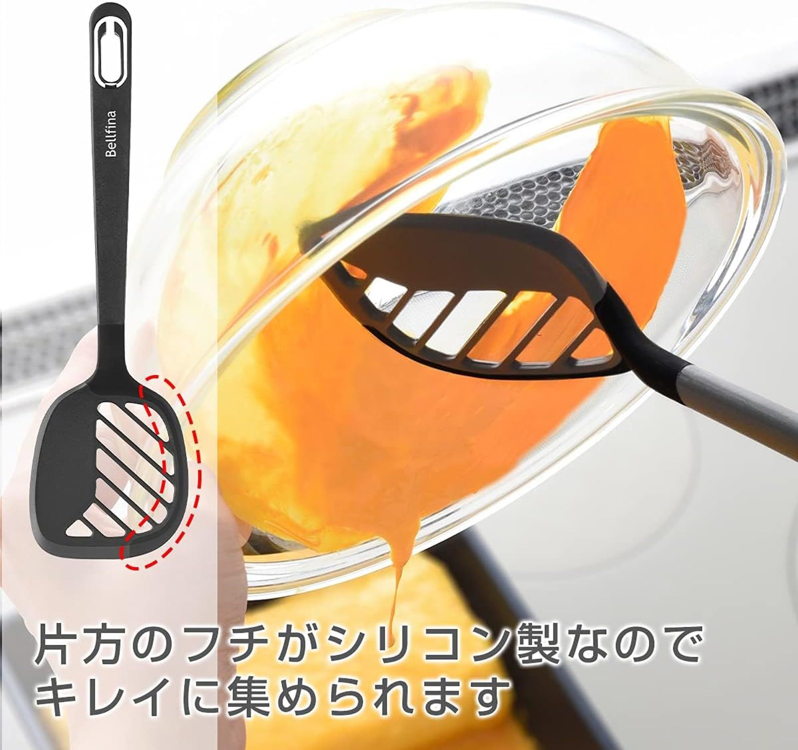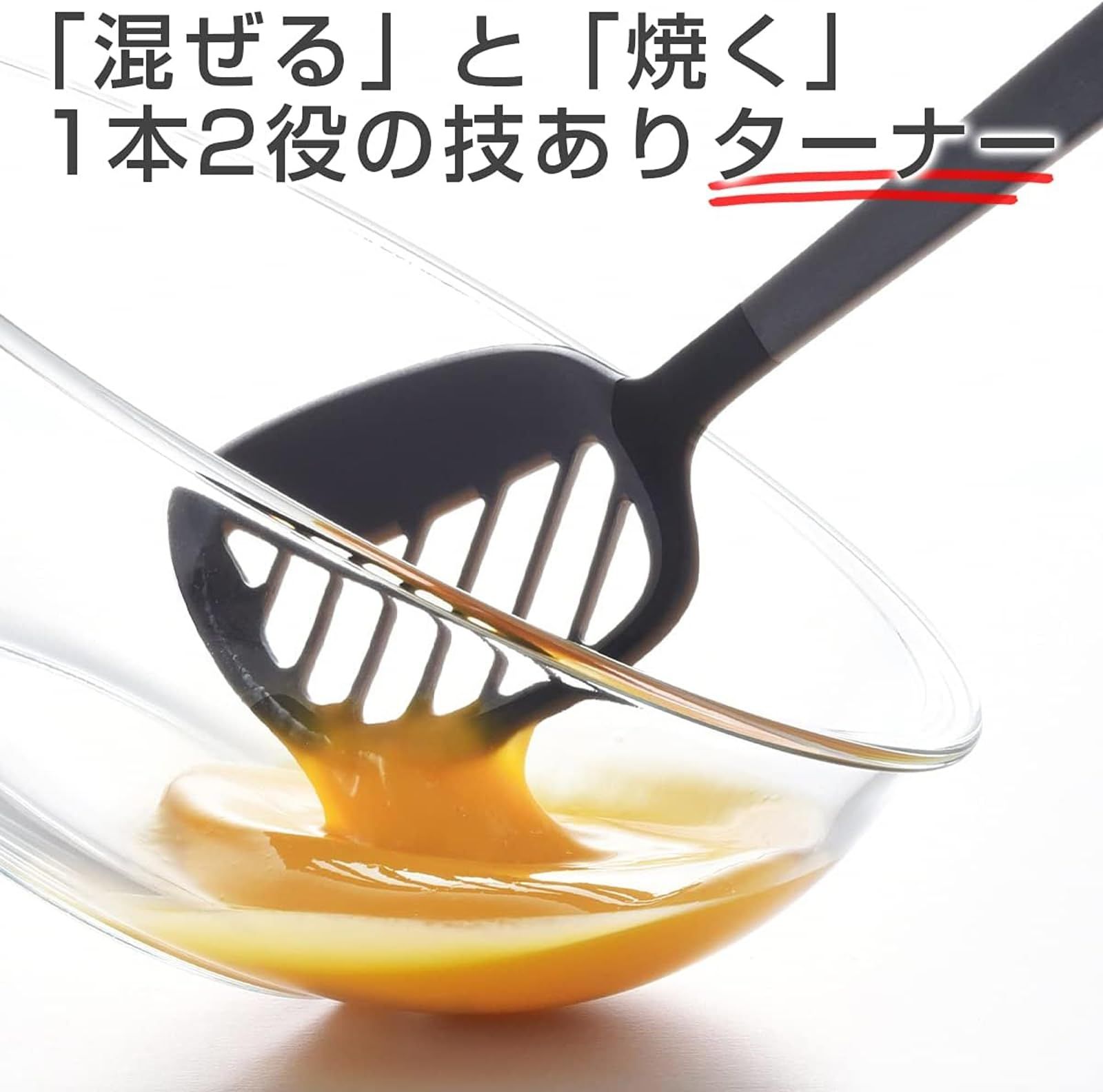 アーネスト(Arnest) 泡立て器/フライ返し (シリコン) / ヘラ (混ぜから焼くまでこれ1本) 耐熱 時短調理 ベルフィーナ シリーズのフライパンに置ける 食洗機対応 30cm (まぜられる ターナー) 大手飲食店愛用ブランド ブラック A-77437