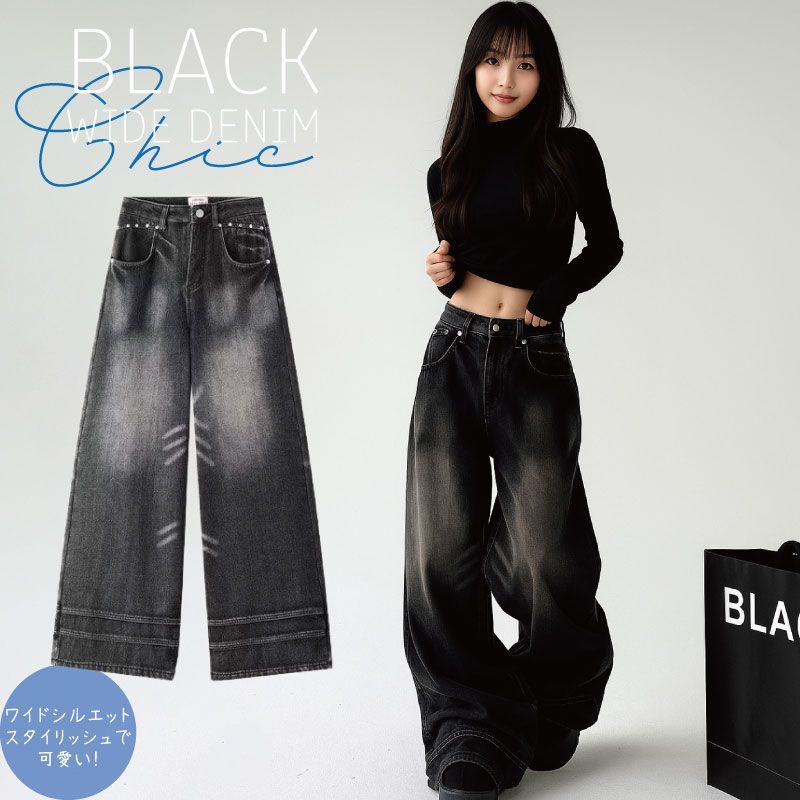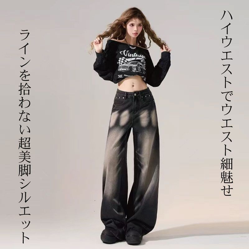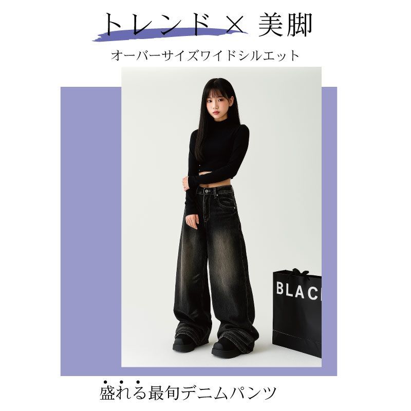 ハイウエストでシルエットがすっきりとしたワイドデニムで超美脚シルエット。