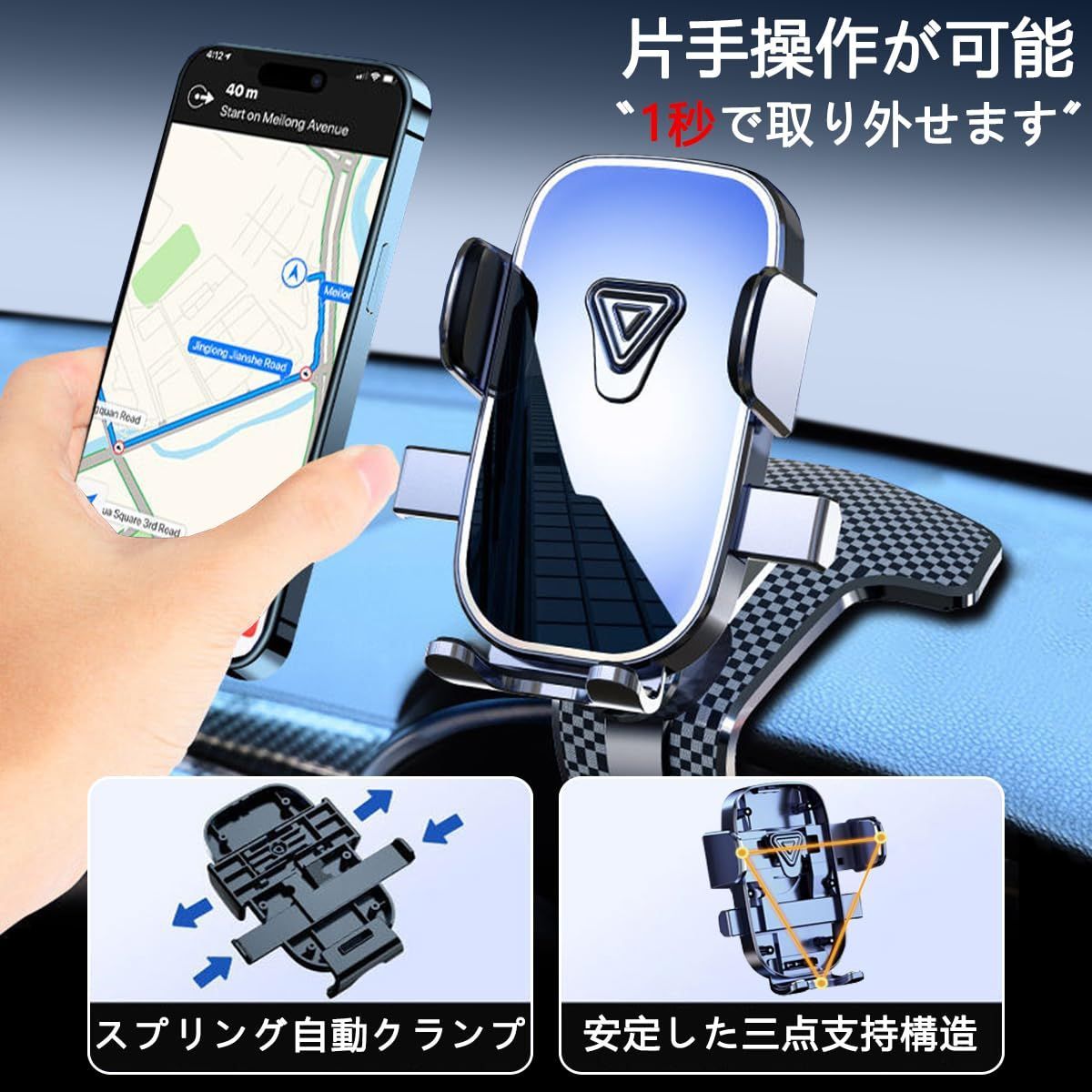 【片手操作が可能】 この自動車用携帯電話ホルダーは使い方が非常に簡単で、両側のボタンを押すとグリッパーが自動的に開きます。携帯電話を入れると自動的にロックされます。