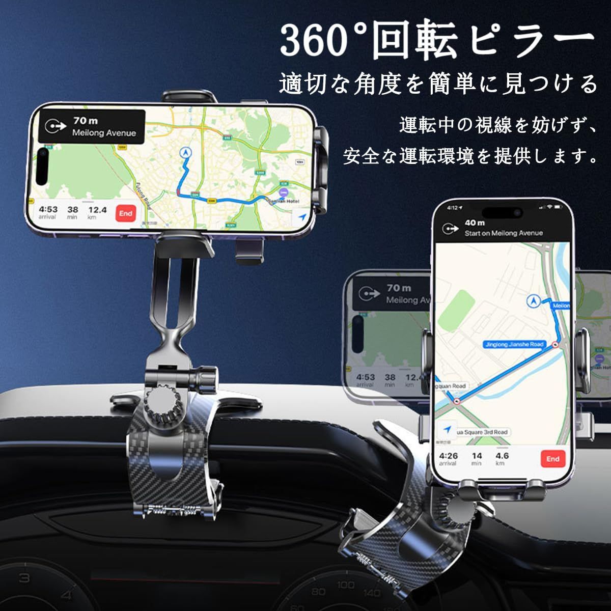 【超自由な回転角度】 この車用携帯電話ホルダーは多くの場所で調整可能で、使用するときに自分に合った角度に調整できるため、視線を妨げず、安全な運転環境を提供します。