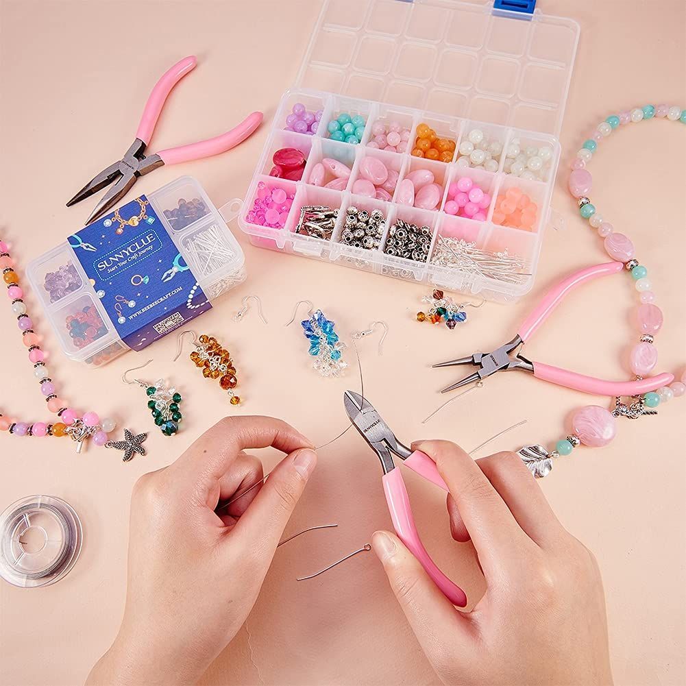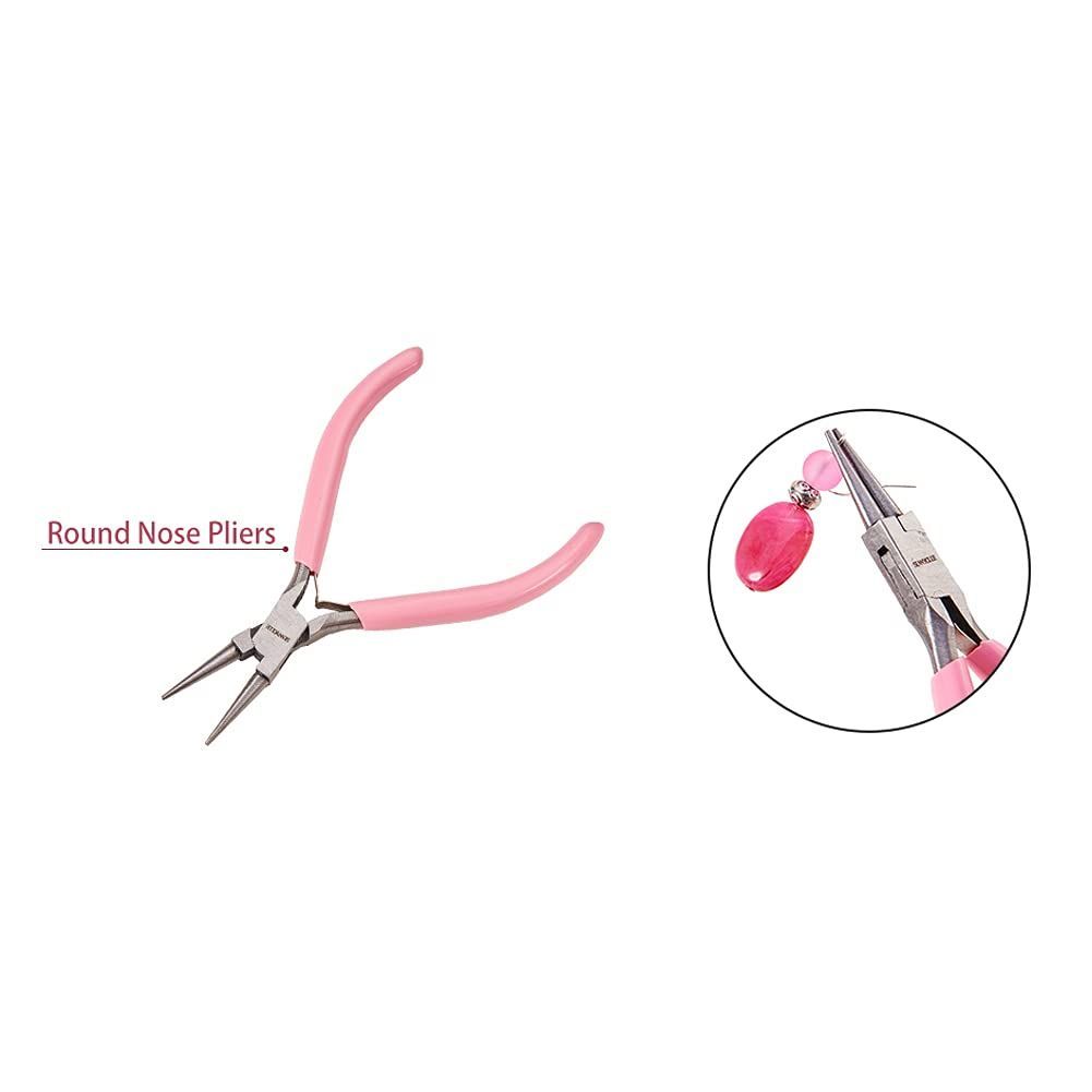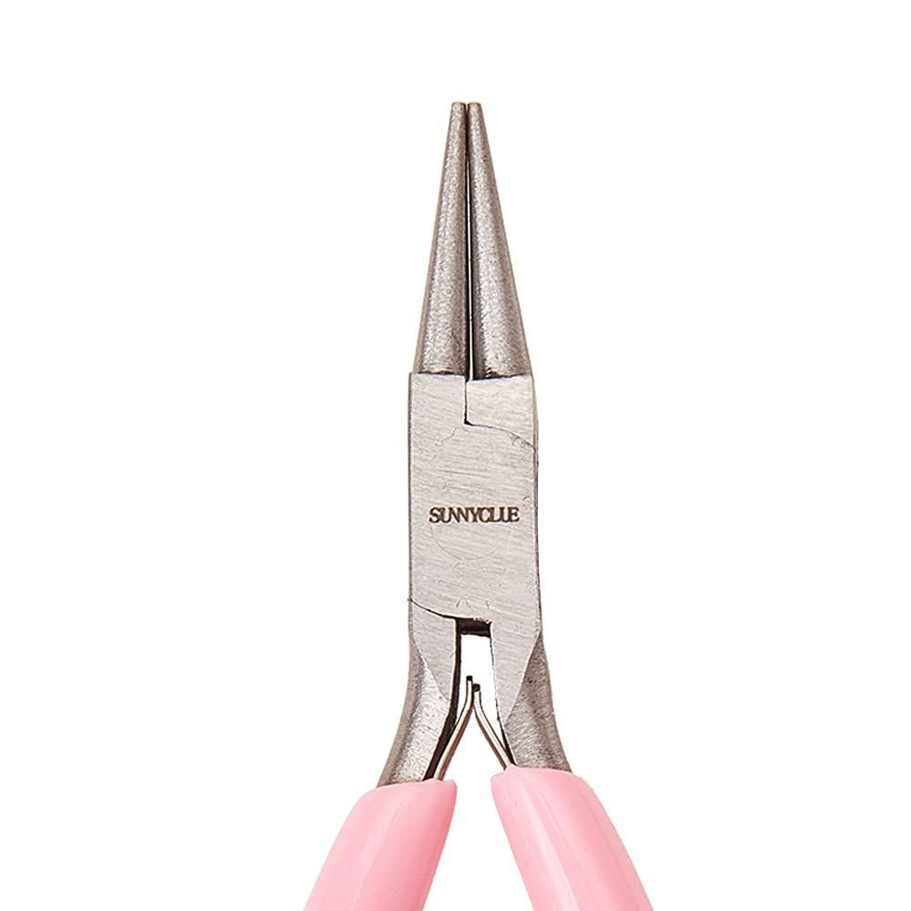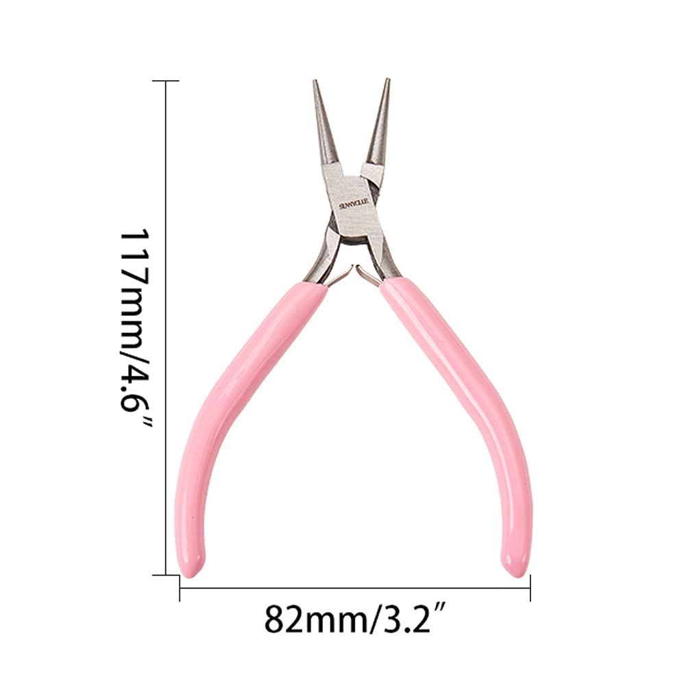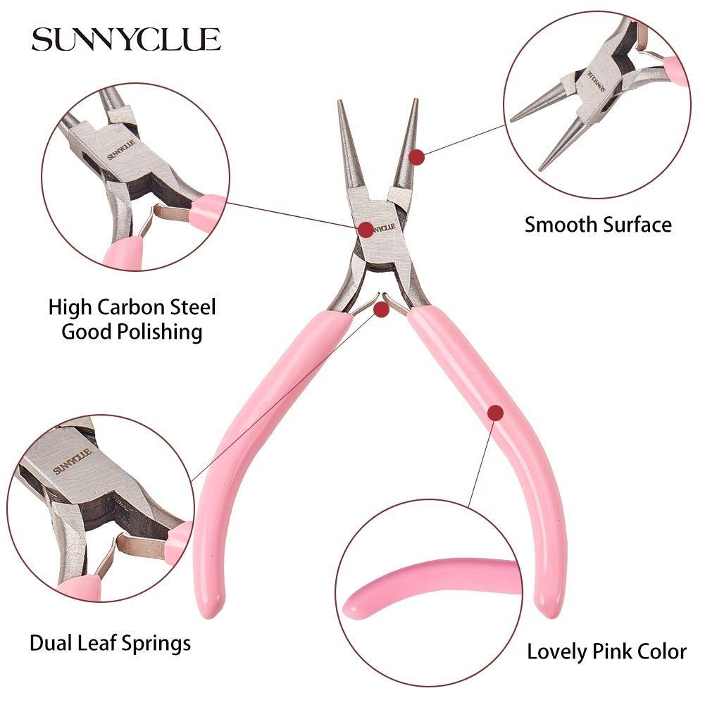 SUNNYCLUE ナイロンジョー ラウンドノーズペンチ 丸ペンチ ラウンドプライヤー 極細 先細ペンチ ジュエリーツール 丸ヤットコ ナイロンジョー プライヤー ペンチ ミニ精密 ピン曲げ ワイヤー マルカン ジャンプリング 手芸用品 クラフトツール プライヤーセット アクセサリー用 製作 ジュエリー作成用 炭素鋼 ピンク DIYクラフト ハンドメイド 手作り 工具 道具