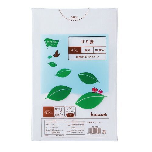 低密度薄口ゴミ袋 少量パック 45L 透明 20枚4216-2896【カウネット】