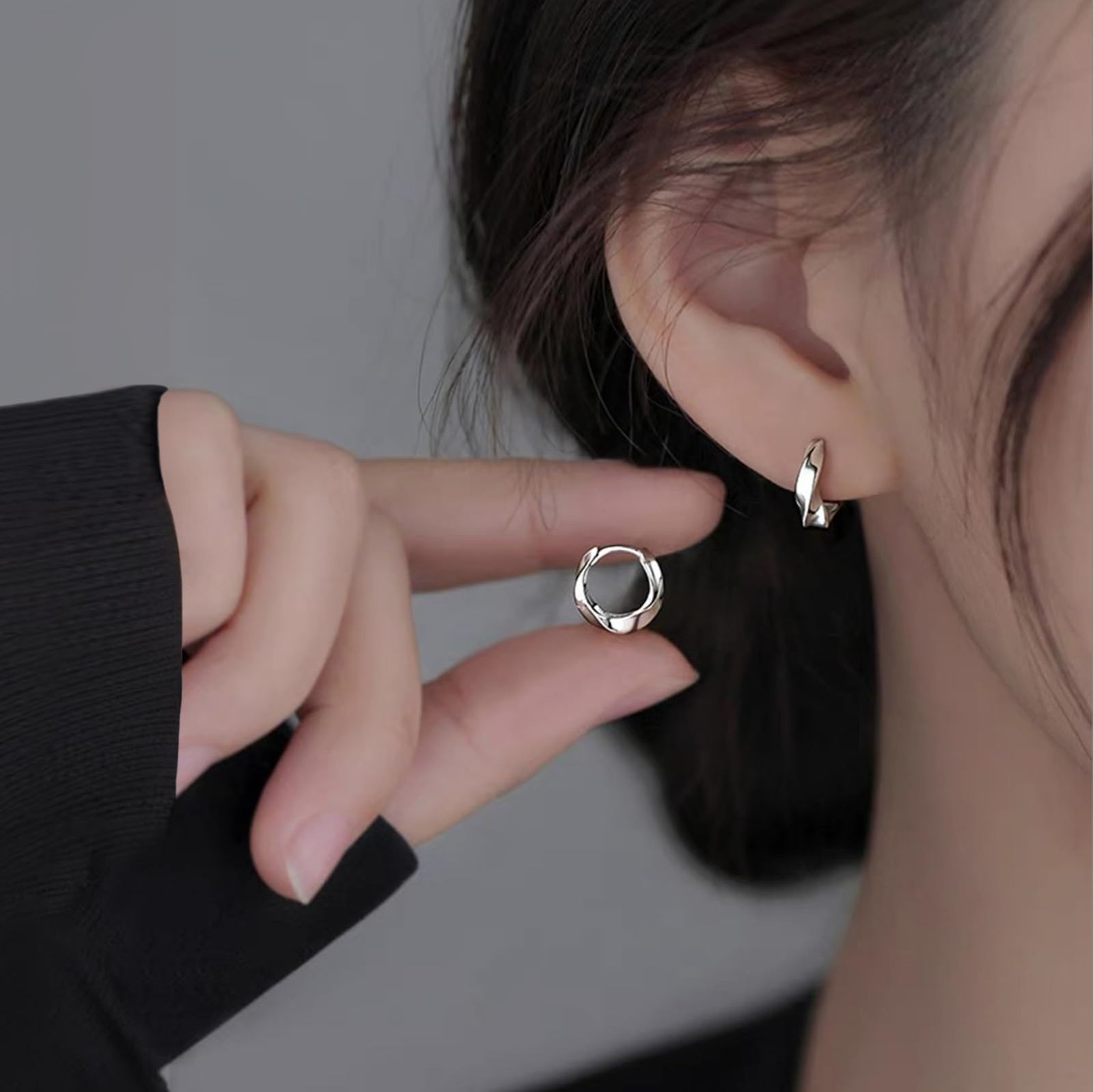 【滑らかなラインと程よいボリューム感が可愛いフープピアス】内径は王道の8.5mm(外径は約11.8mm)で、滑らかなラインと程よいボリューム感が可愛い万能ピアスです。シンプルながら洗練されたデザインはコーディネートのアクセントとなり、ご自分用はもちろん、恋人同士、お友達同士のお揃いピアスとしても大人気です。ポストは小さなピアスホールの方も痛くならないよう、直径約0.8mm(20G)となっています。地金は体に優しく幸運を運んでくれるスターリングシルバー925を使用し、高級ジュエリーによく採用される純ロジウムコーティング(プラチナ仕上げ)が熟練の職人たちの手によって丁寧に施されています。エレガントで大人可愛いピンクゴールドと、ゴージャスで肌映えの良いゴールド、そしてスタイリッシュで上品なプラチナの3色がランナップされています。本物ならではの上品な輝きはさり気なく耳元を彩ってくれます♪