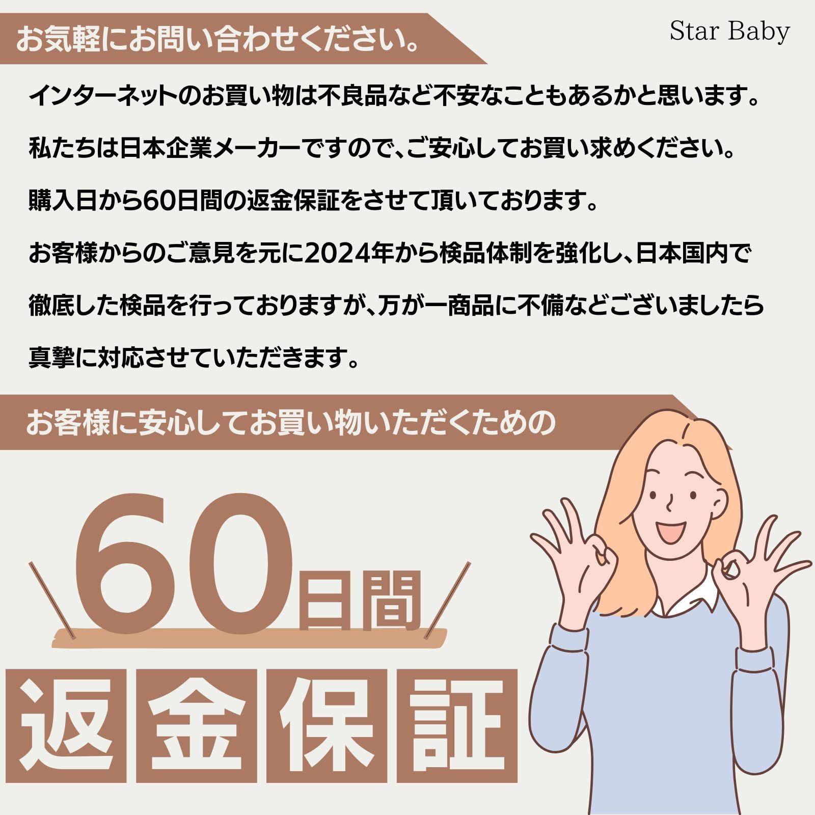 【????安心の日本国内検品&60日????】 日本国内で1つ1つ丁寧に検品されています。さらに、ご購入から60日のがついているため、万が一の際も安心してお使いいただけます。日本の会社が企画・販売している商品です。