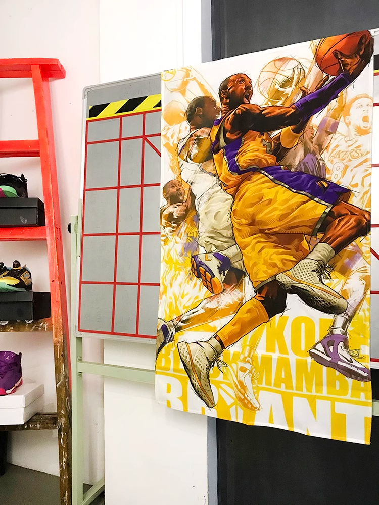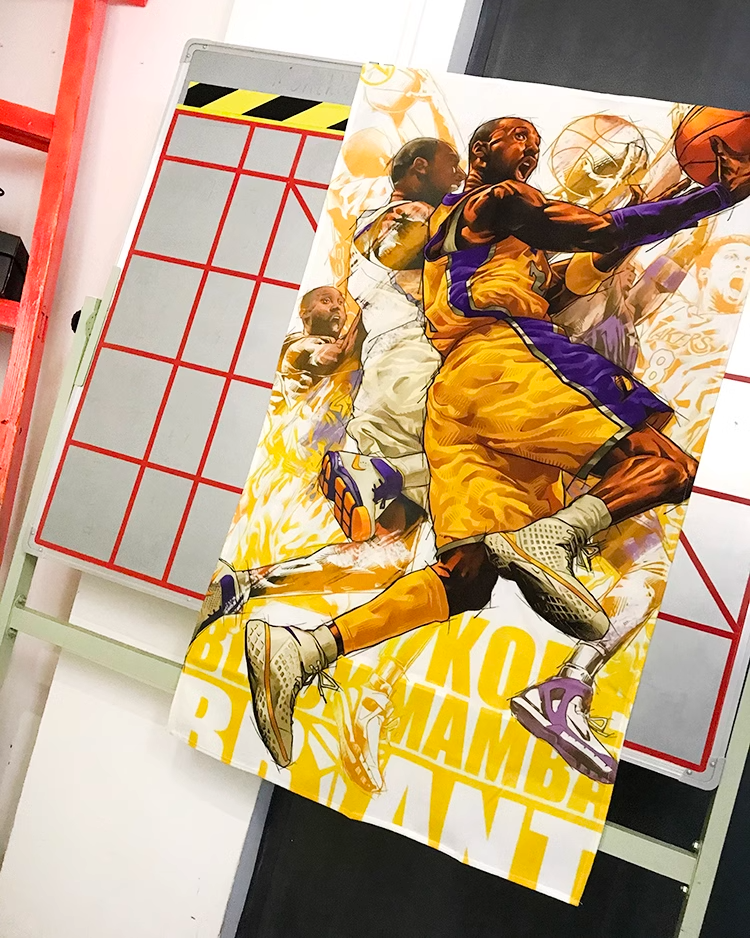 こちらは、NBAのレジェンド、コービー・ブライアントをフィーチャーしたフランネル素材の壁掛け装飾画です。生き生きとした彼のプレイ姿が、紫金色のロサンゼルス・レイカーズユニフォームを身にまとい、バスケットボールを激しくドリブルしながらゴールに向かう瞬間を捉えています。この壁掛けは、コービーの情熱と彼が篮球界に残した遺産を称えるファンにとって、感動的なコレクションアイテムとなるでしょう。彼の不屈の精神とスポーツマンシップを日常に取り入れ、インテリアとしてもお楽しみいただけます。