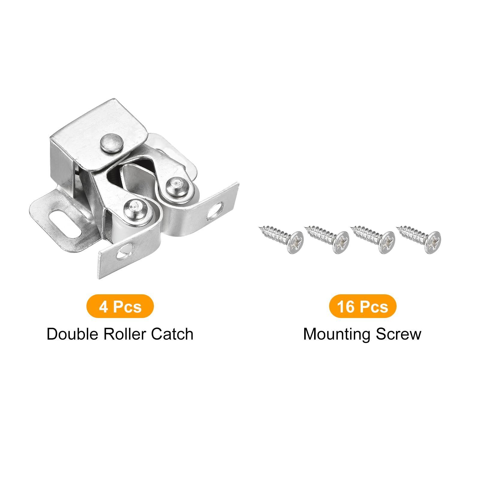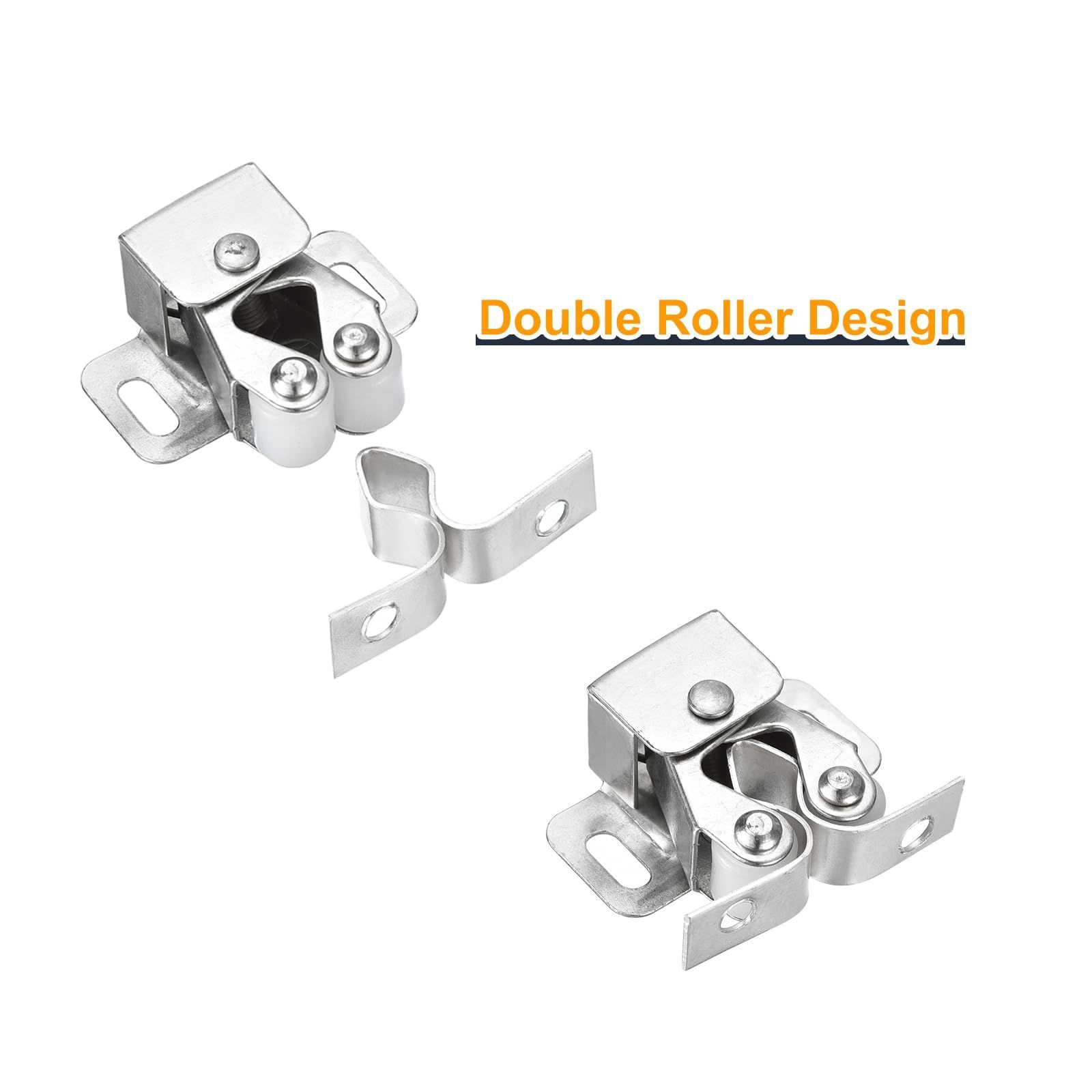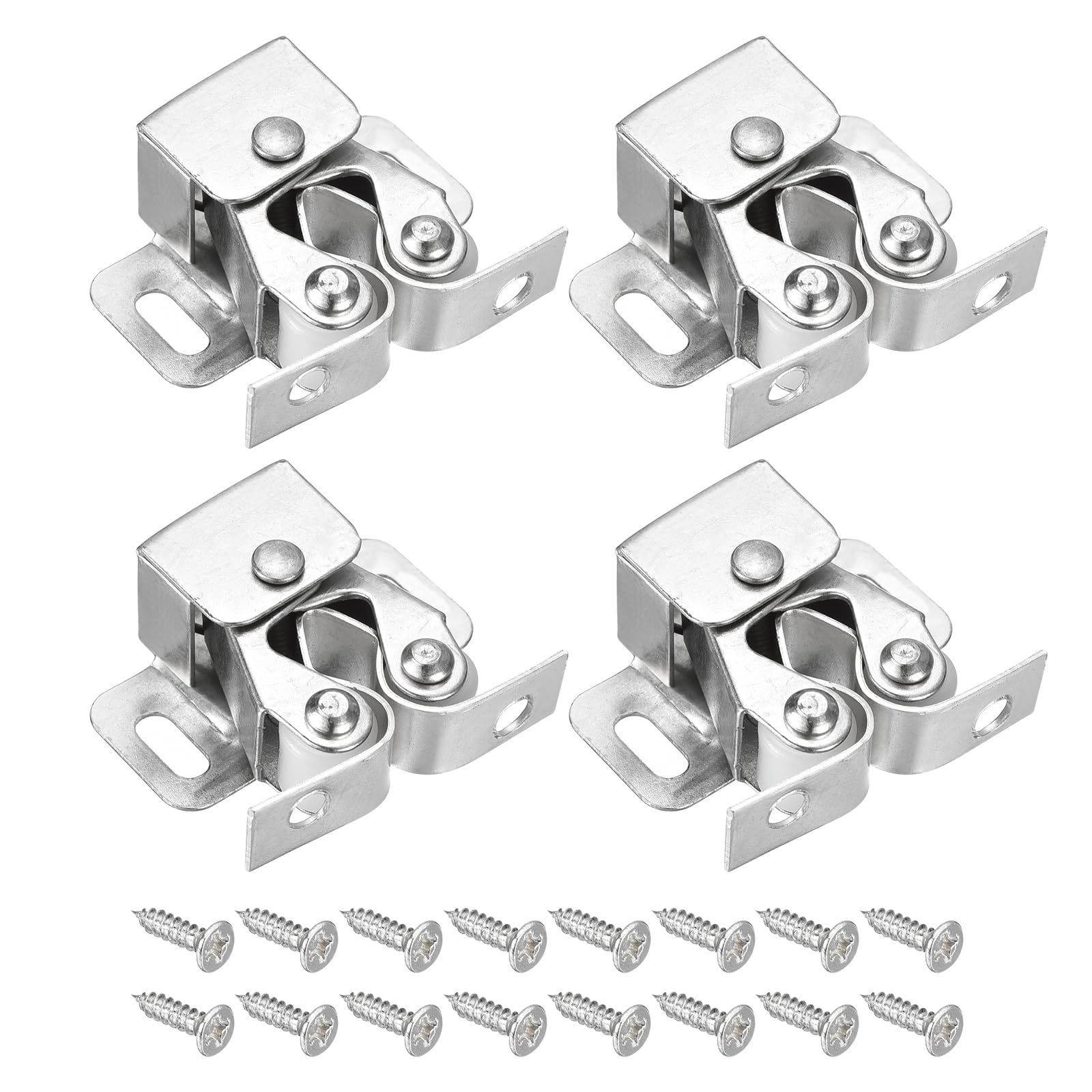 uxcell ダブルローラーキャッチ キャビネットラッチ ハードウェアフィッティング キャビネット食器棚クローゼット家具ドア用 シルバー 4セット
