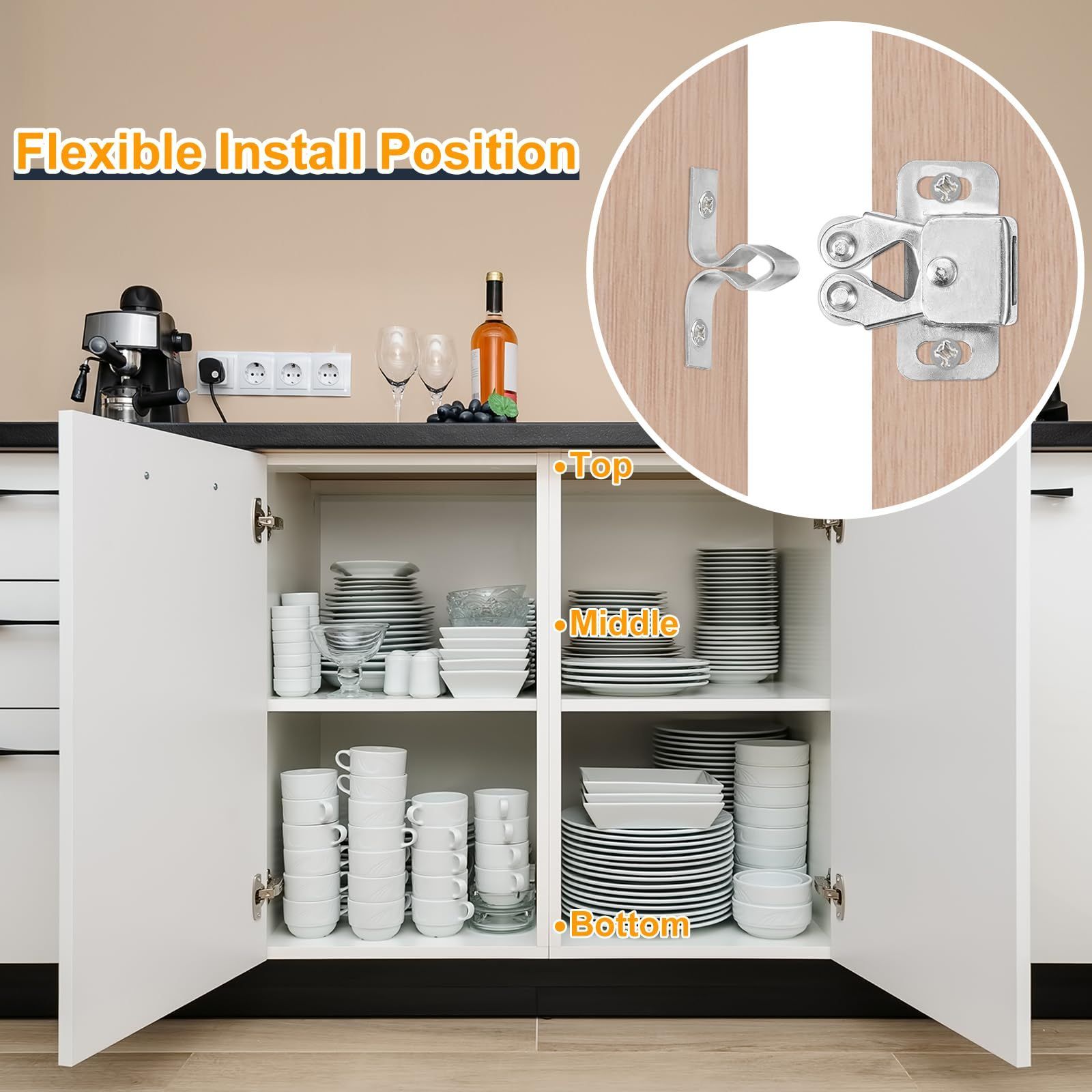 幅広い用途-ダブルローラーキャッチはキャビネット、クローゼット、ワードローブ、食器棚、引き出し、本棚など、さまざまな家具のドアに適しています。通常、これらはヒンジなどの他のキャビネットのハードウェアと組み合わせて使用され、キャビネットのドアが適切に閉じられて位置が合っていることを確認し、ドアが自動的に開くのを防ぎます。
