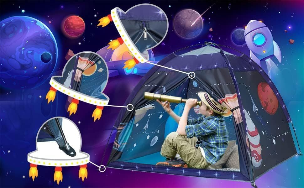 Mnagant キッズテント 宇宙旅行テント 折りたたみ テントハウス 室内 屋外 収納バッグ付き 子供用テント キャンプセット 秘密基地 こども用 窓付き 簡単に組立 誕生日 クリスマス プレゼント-126 x 126 x 102 cm