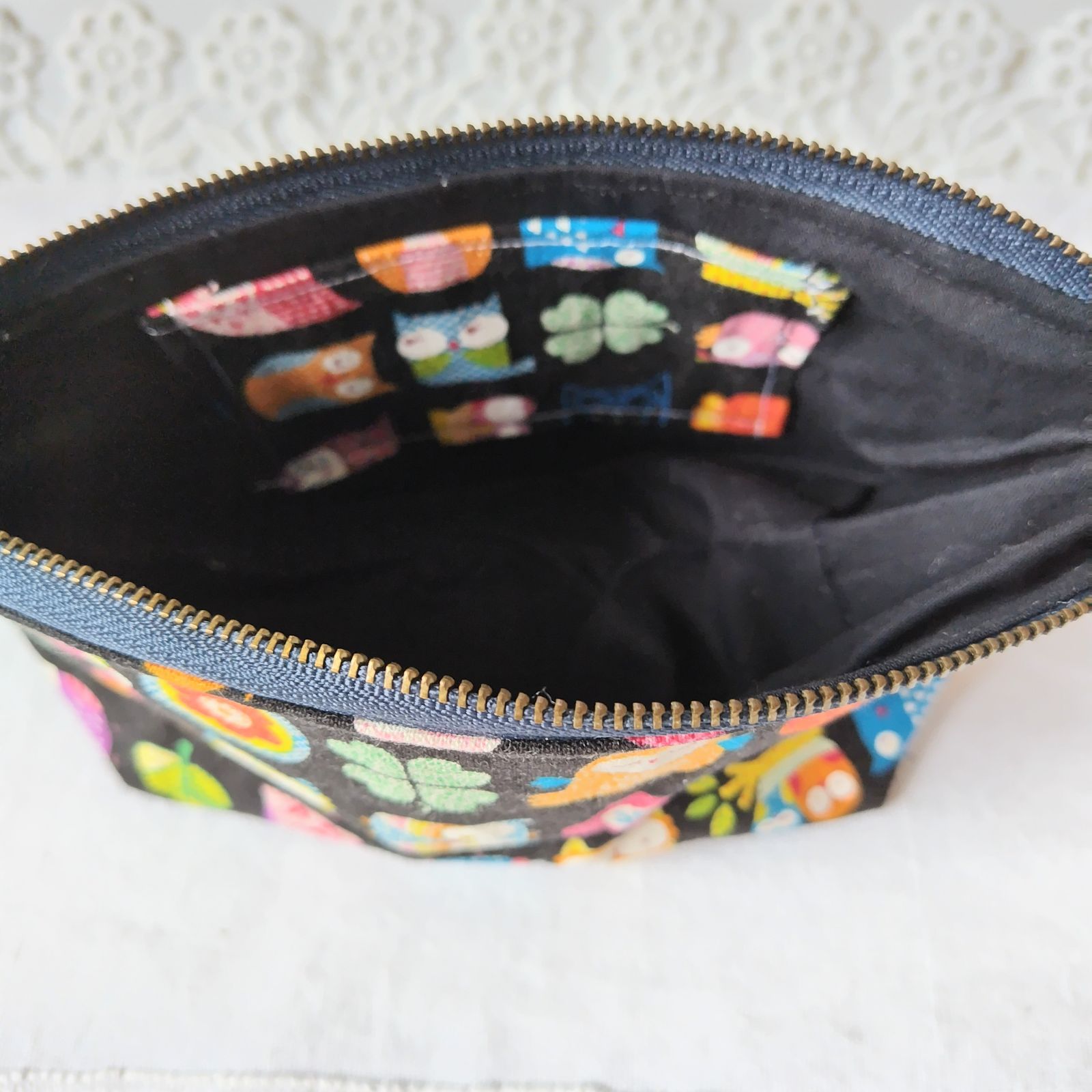 中布 黒 (ポケットは、表と同じふくろう柄)