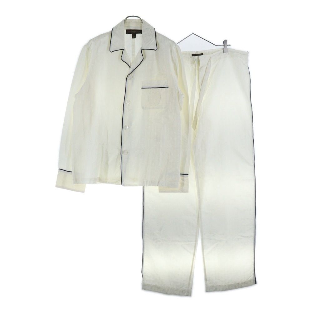 【品名】セットアップ エンブレム ロゴ刺繍 モノグラム総柄 長袖 パジャマシャツ ドローストリング ロングパンツ ホワイト/ネイビー