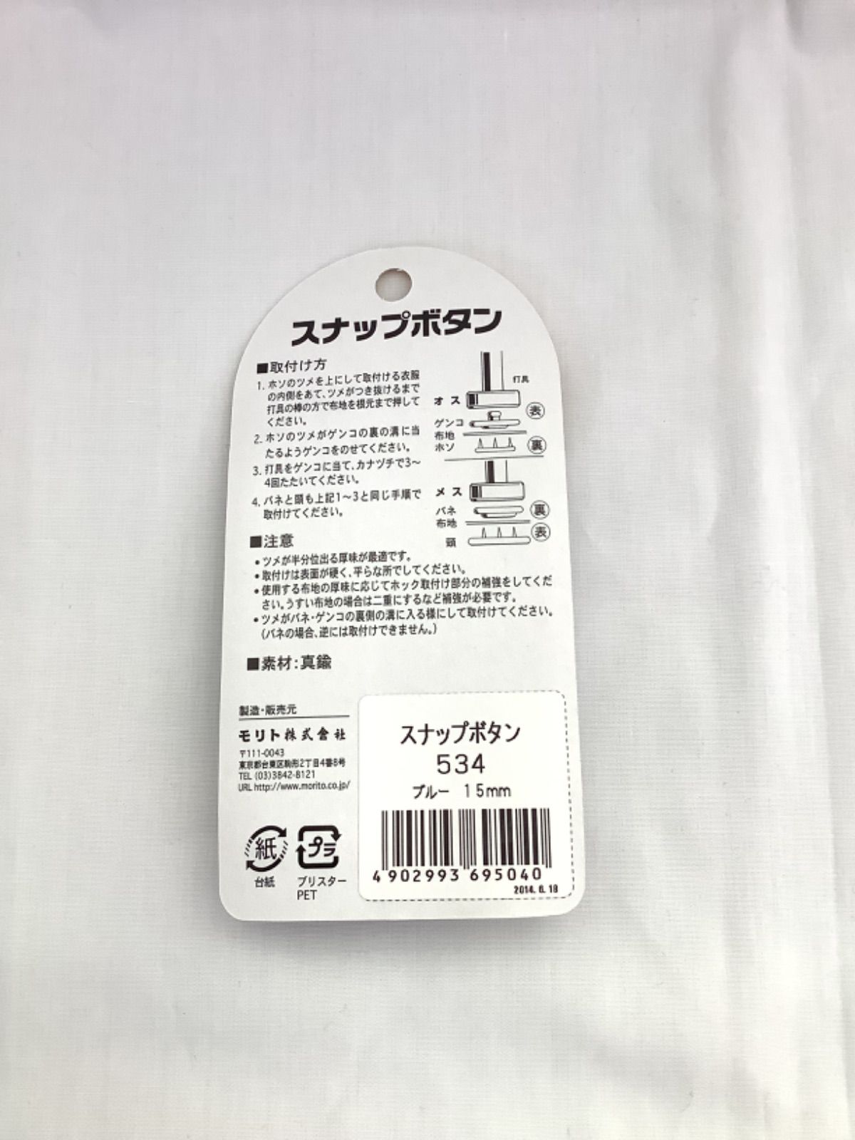 モリト スナップボタン(キャップタイプ)  15mm 534 ブルー(5個入り) 2個セット 新品・未使用