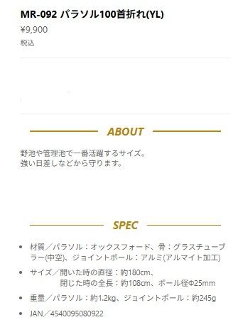 【ベルモント MR-92パラソル100首折れYL 商品の説明】