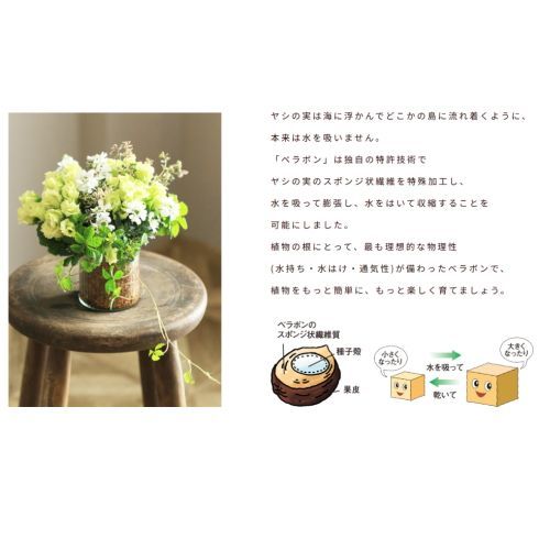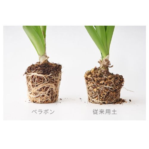 ベラボンプレミアムは従来のあく抜きベラボンに更に加工を加え、ふるいで選別し、あく抜きも強化したプレミアム仕様です。水につけず乾いたままでも土と同じように単用で使用でき、従来のあく抜きベラボンと比較してコツがいりません。いつまでもチップが空気を保つフワフワな極上の手触りで、「重くて処理に困る土はもう使わない」というコンセプトで主に寄せ植え、ギャザリングや穴のないガラス器の観葉植えなど、用途が広がっております。