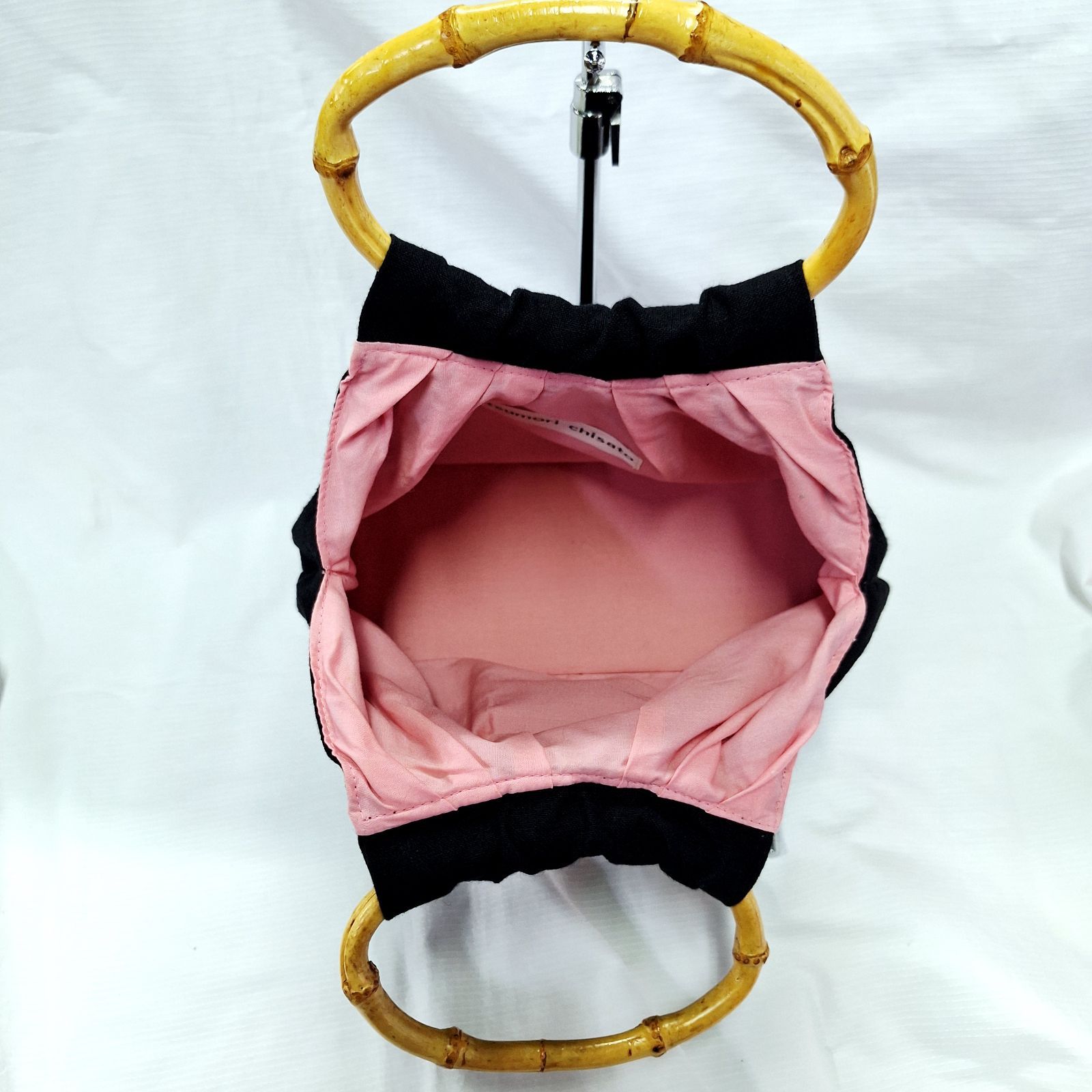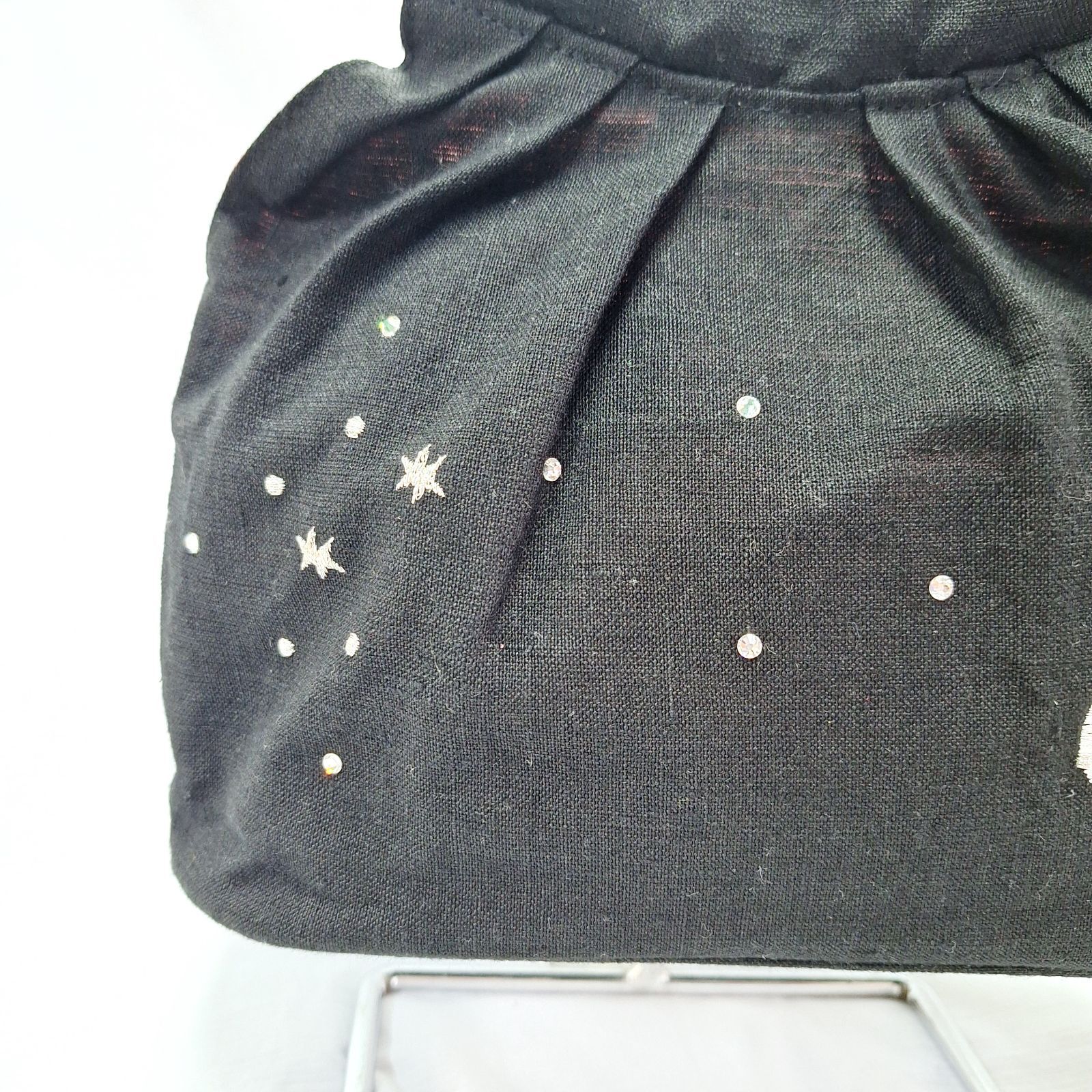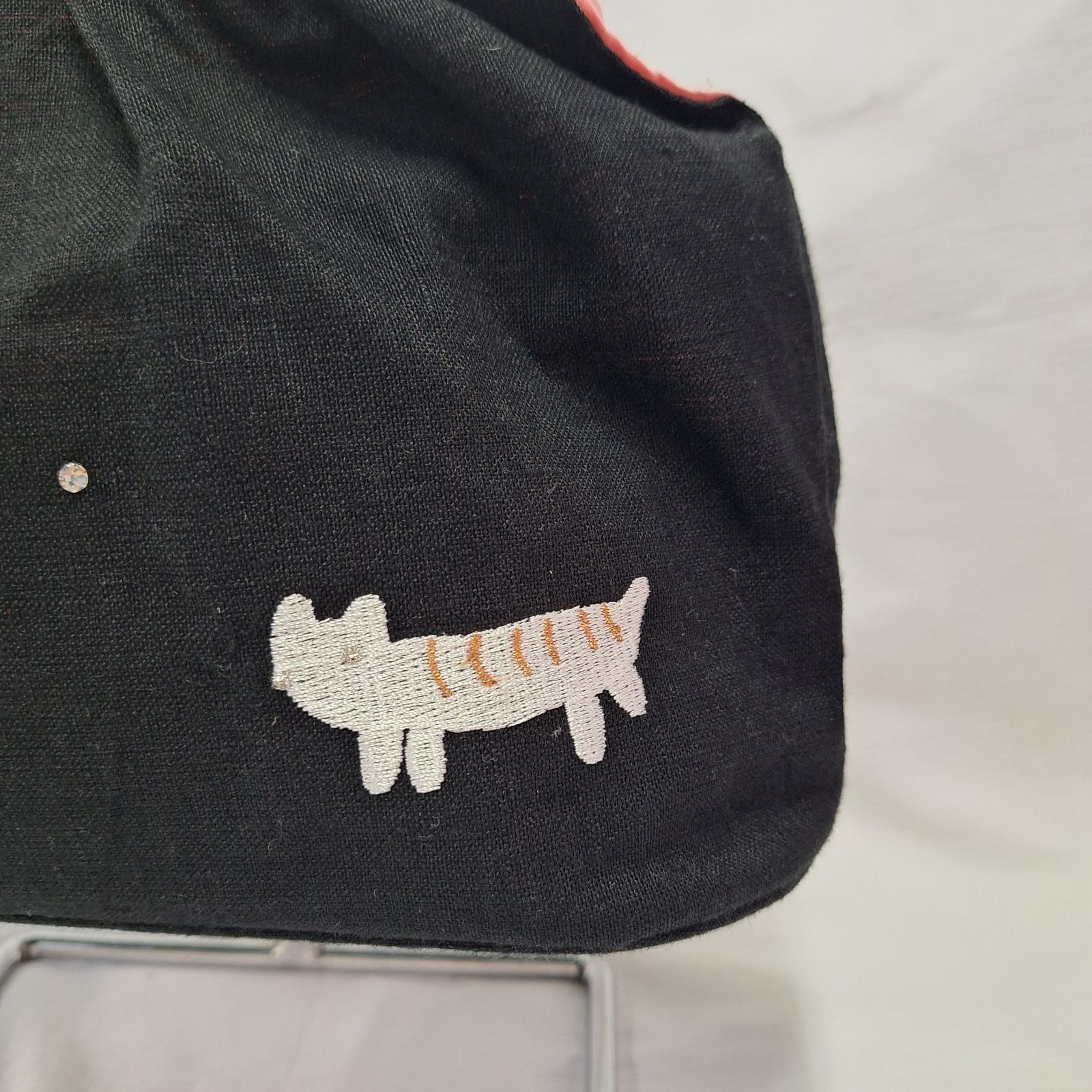 ねこちゃんの刺繍とキラキラのストーンでかわいいデザイン。ちょっとしたお出かけや浴衣着物等の和装、オールシーズンいつでも使えます♪