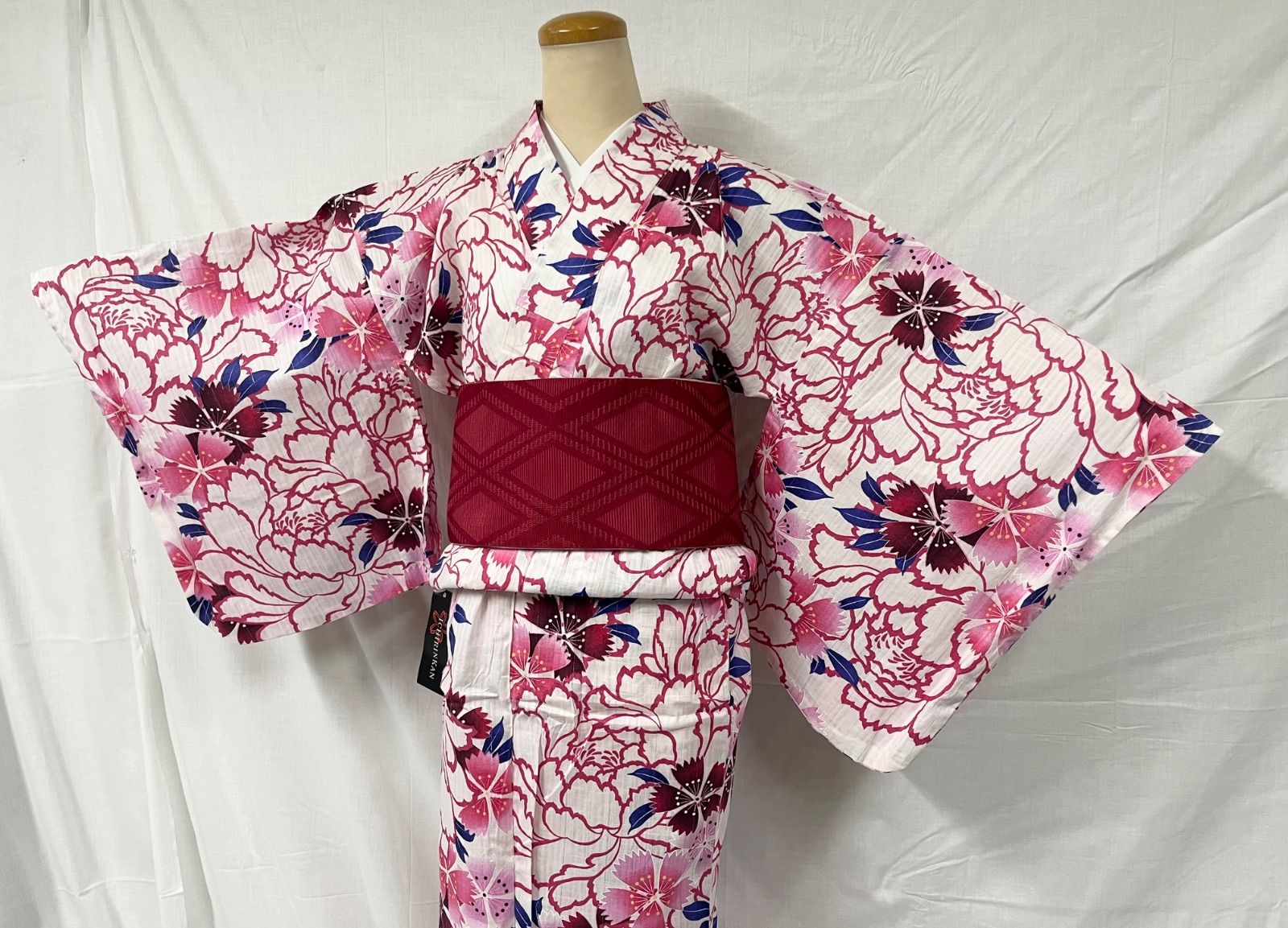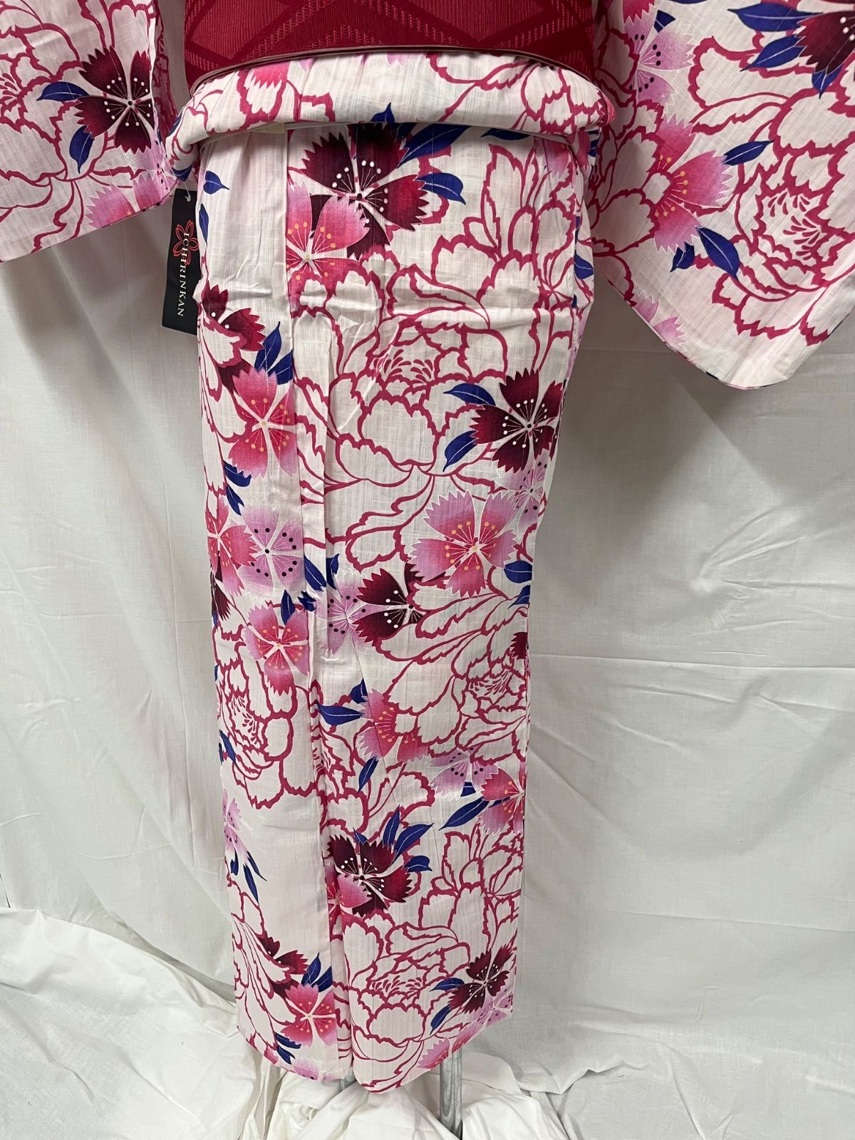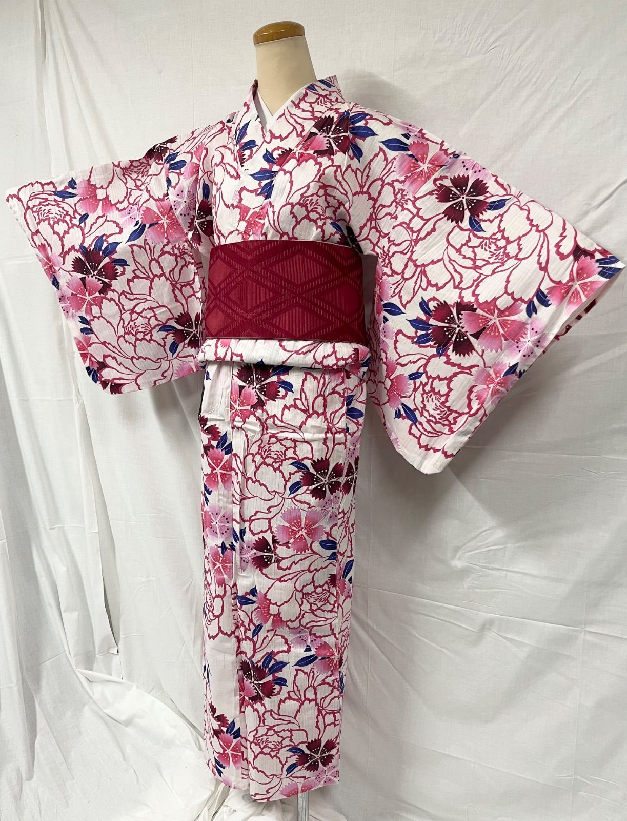 未使用 匿名配送 浴衣 レディース 白 ピンク 赤 紫 シルバーラメ糸 撫子 柄