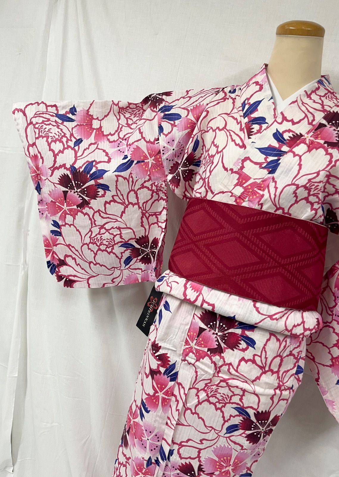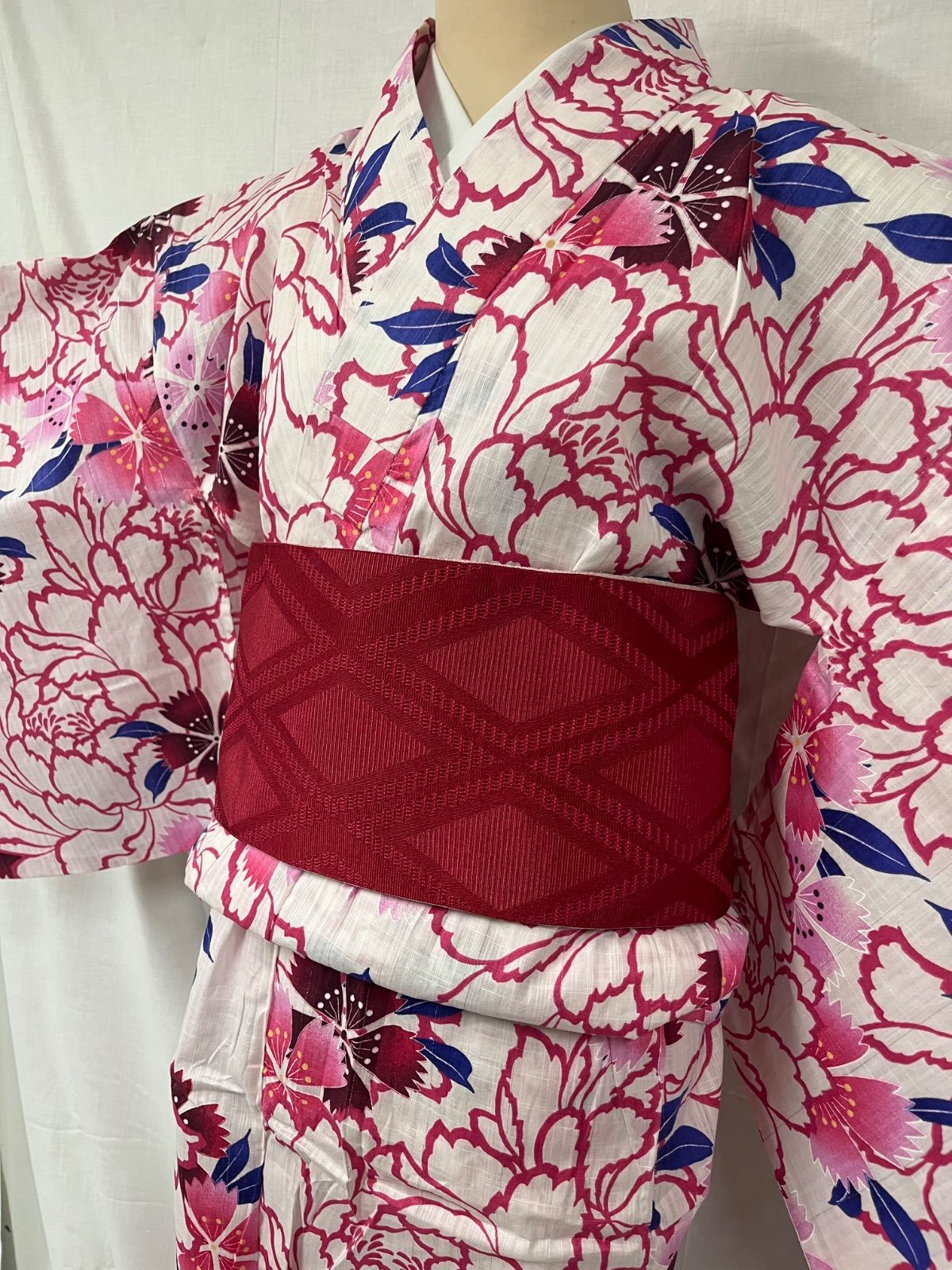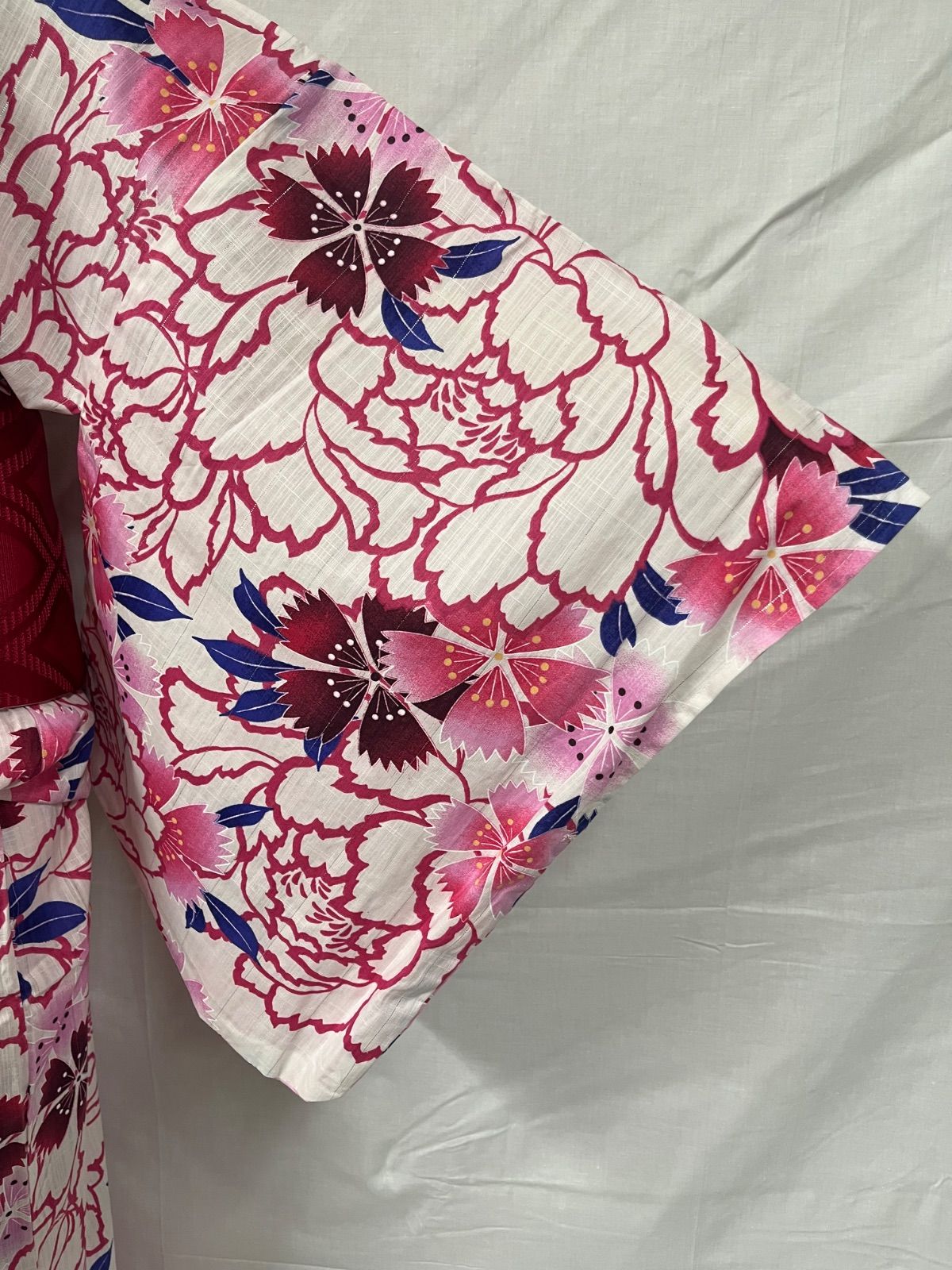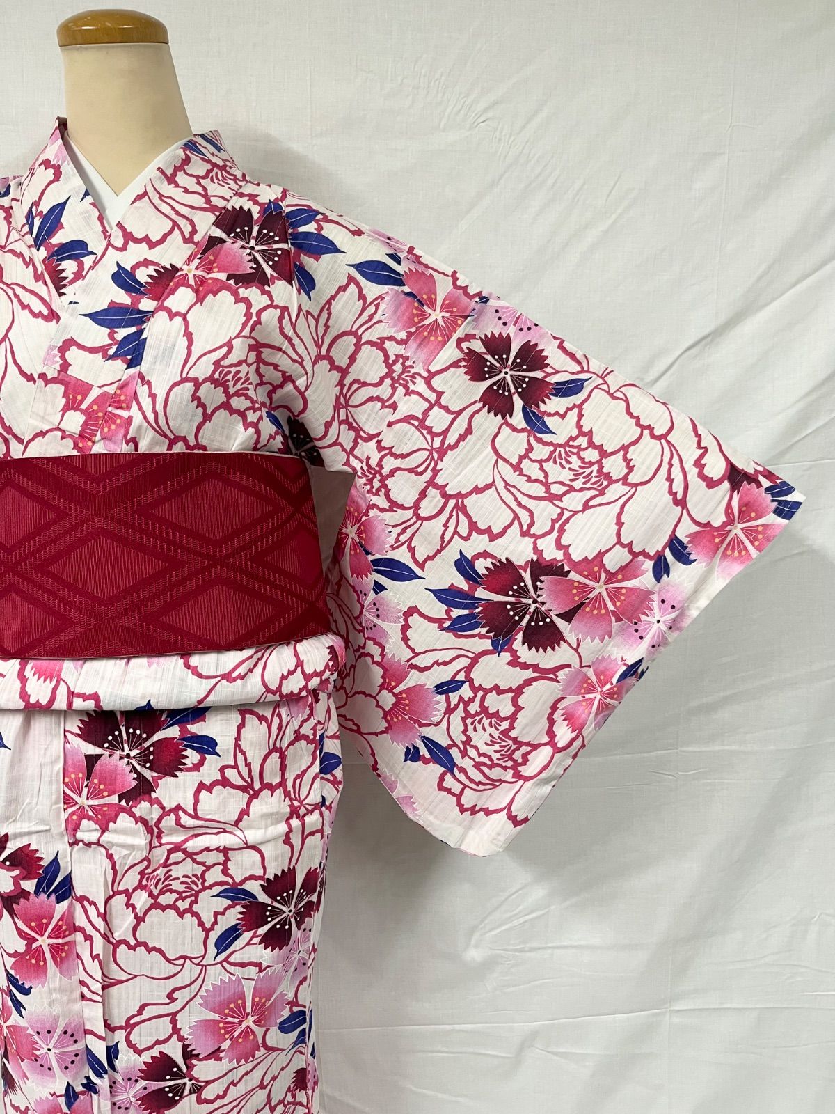 未使用 匿名配送 浴衣 レディース 白 ピンク 赤 紫 シルバーラメ糸 撫子 柄