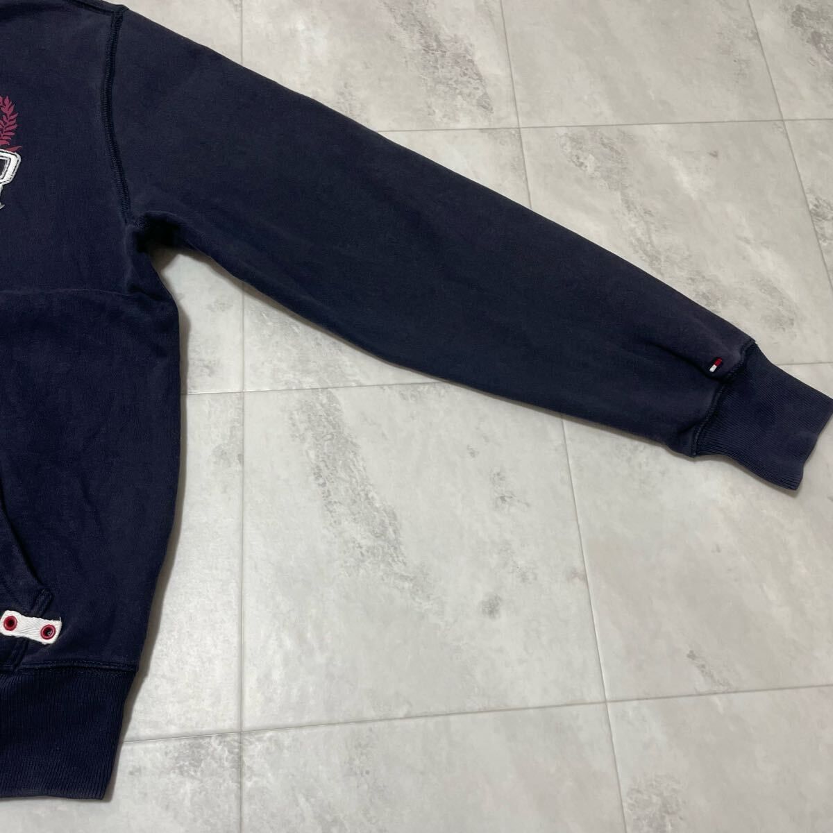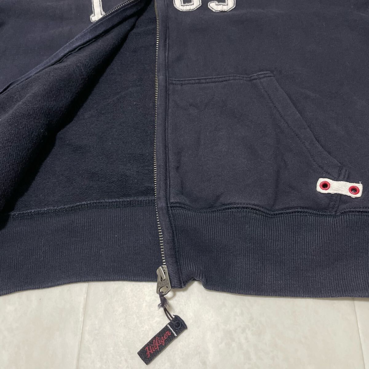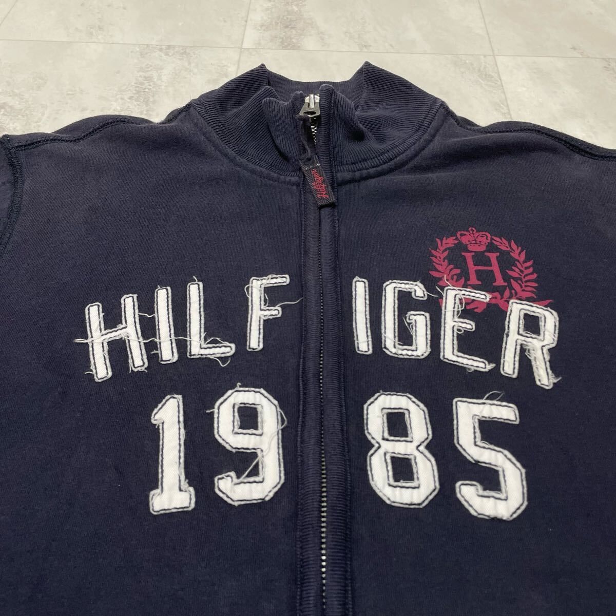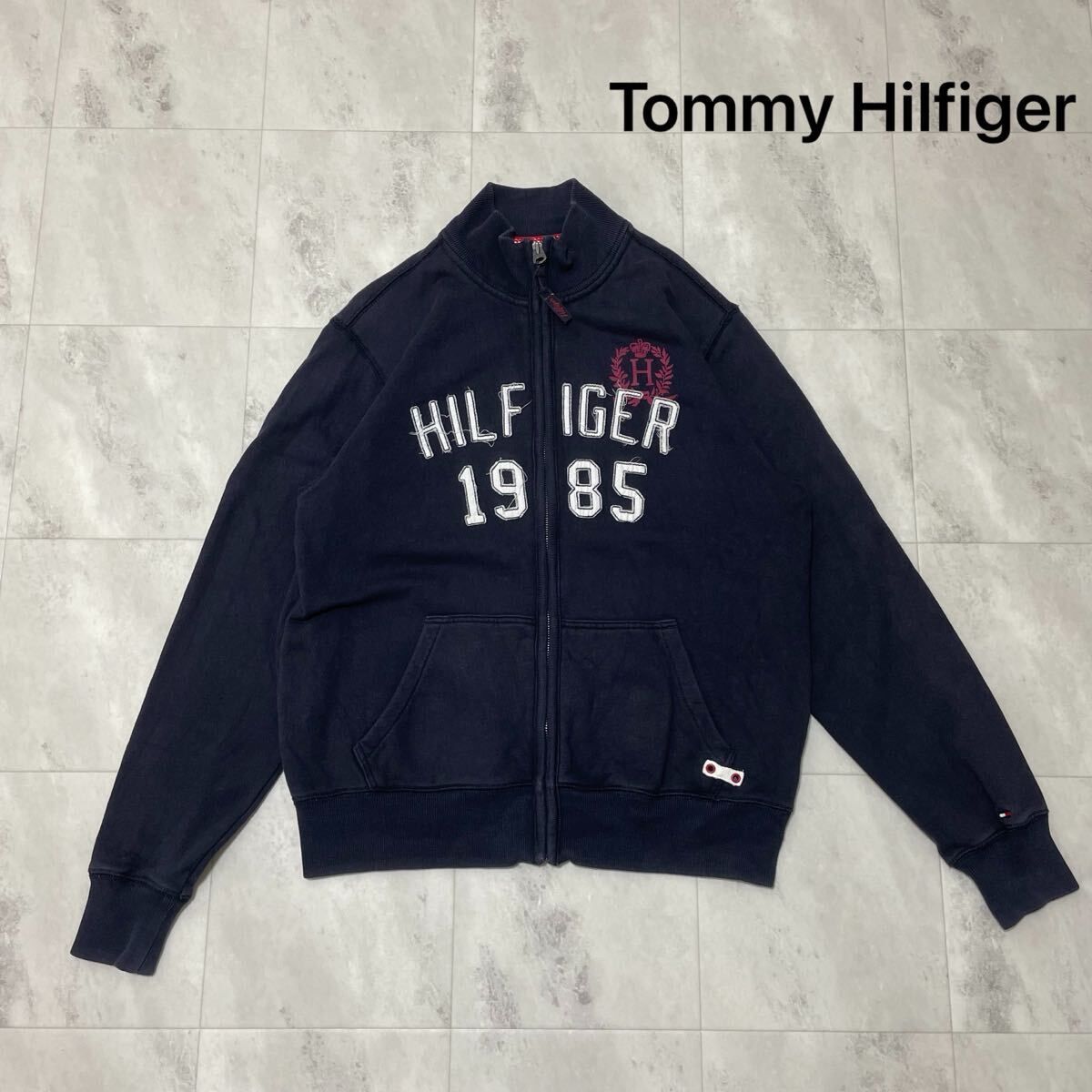 Tommy Hilfiger トミーヒルフィガー sweat スウェット ジップアップ ビッグ刺繍ロゴ ネイビー サイズS 玉FL3925