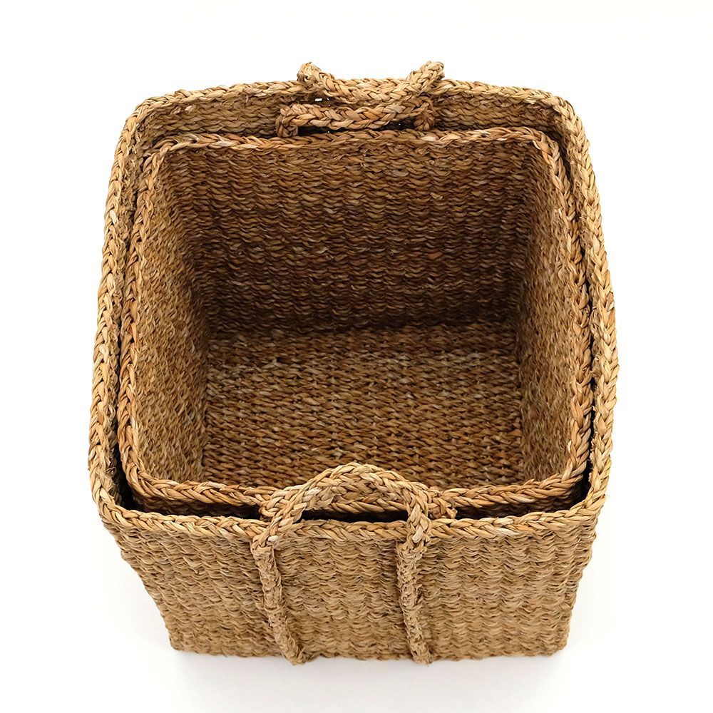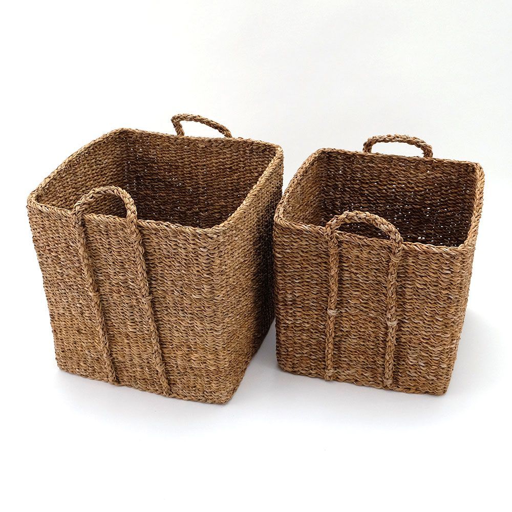 素朴な風合いが魅力的なシーグラスのバスケット。 職人によってひとつひとつ丁寧にハンドメイドで編まれています。 持ち手が付いているので持ち運びしやすく、鉢カバーとしても使っていただけます。インテリアとしてもお部屋の雰囲気を上げてくれる一点です。