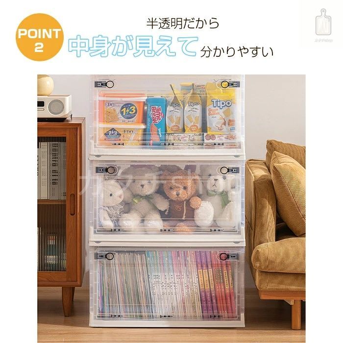 特徴 折りたたみ可能・スタック可能・フロントフラップ・キャスター付き・
