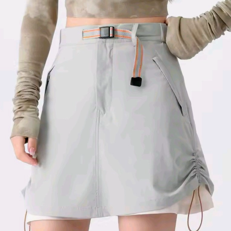 ポリエステル100%のインナーパンツにシルク87%・コットン13%のラップスカートです。