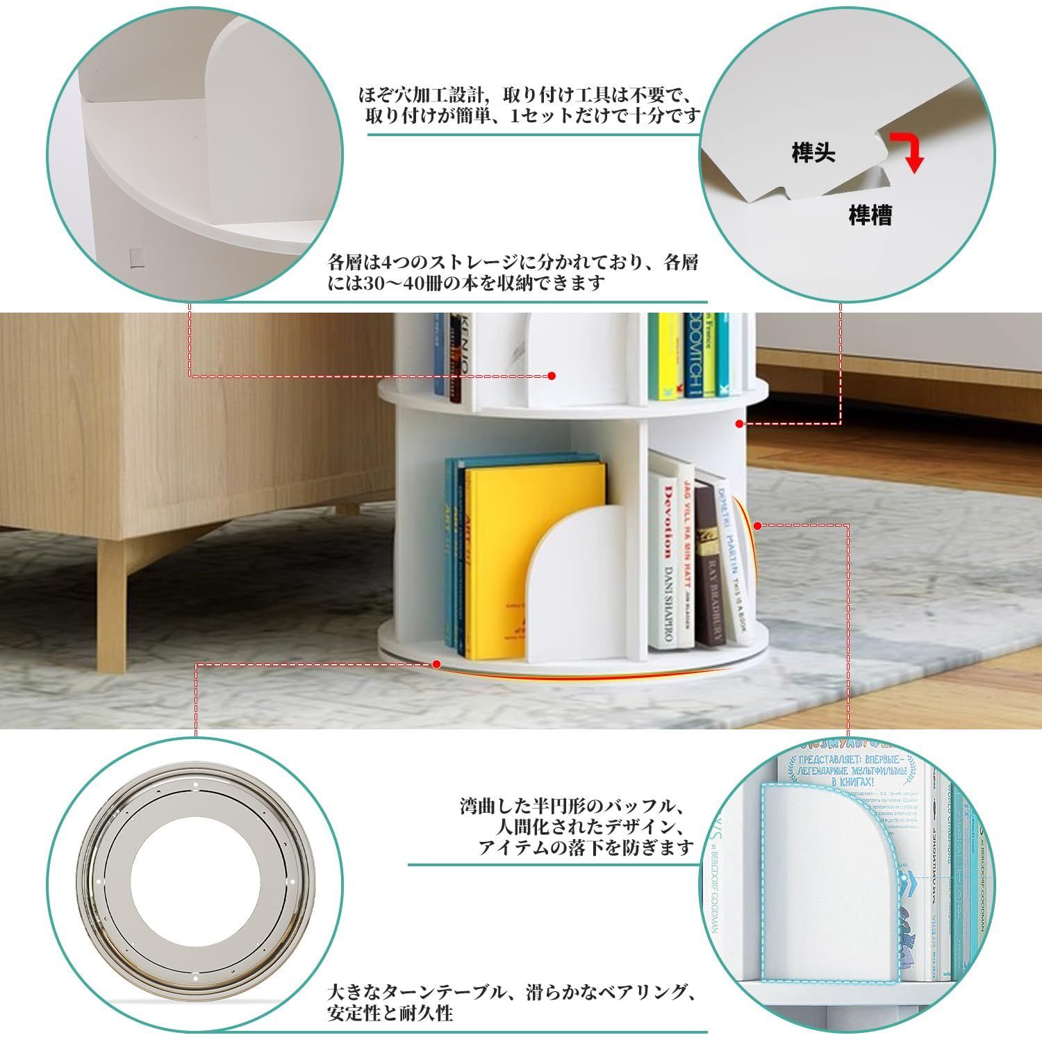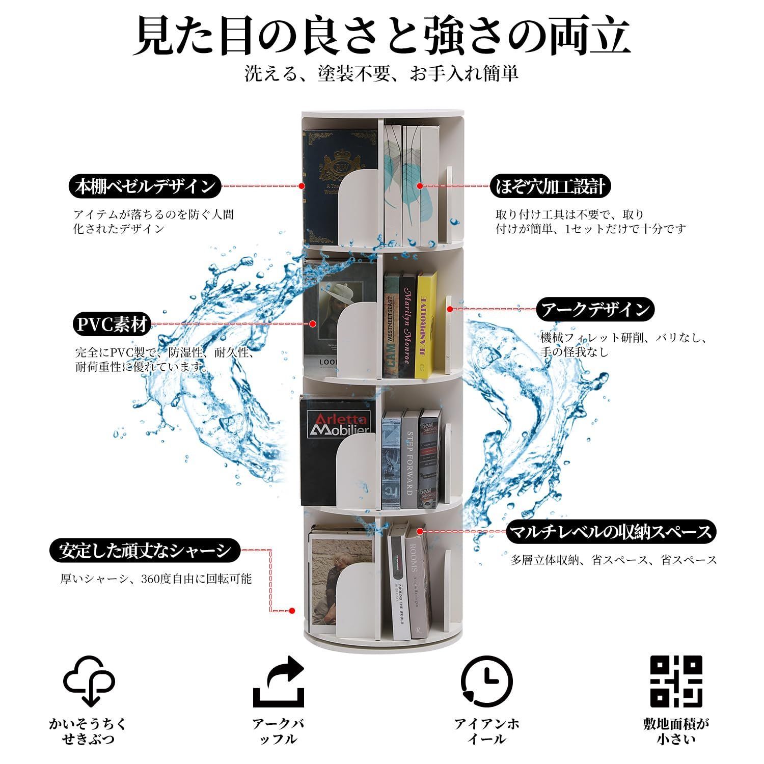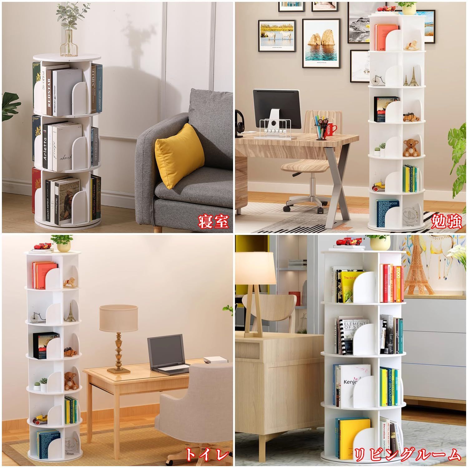 【収納スペースと多用途性】360°本棚はユニークなデザイン、大きな収納スペース、小さな設置面積を備えています。寝室、リビングルーム、子供部屋、勉強部屋、プレイルームに置くことができ、どんな部屋の装飾にも優雅さと洗練のタッチを加えます。