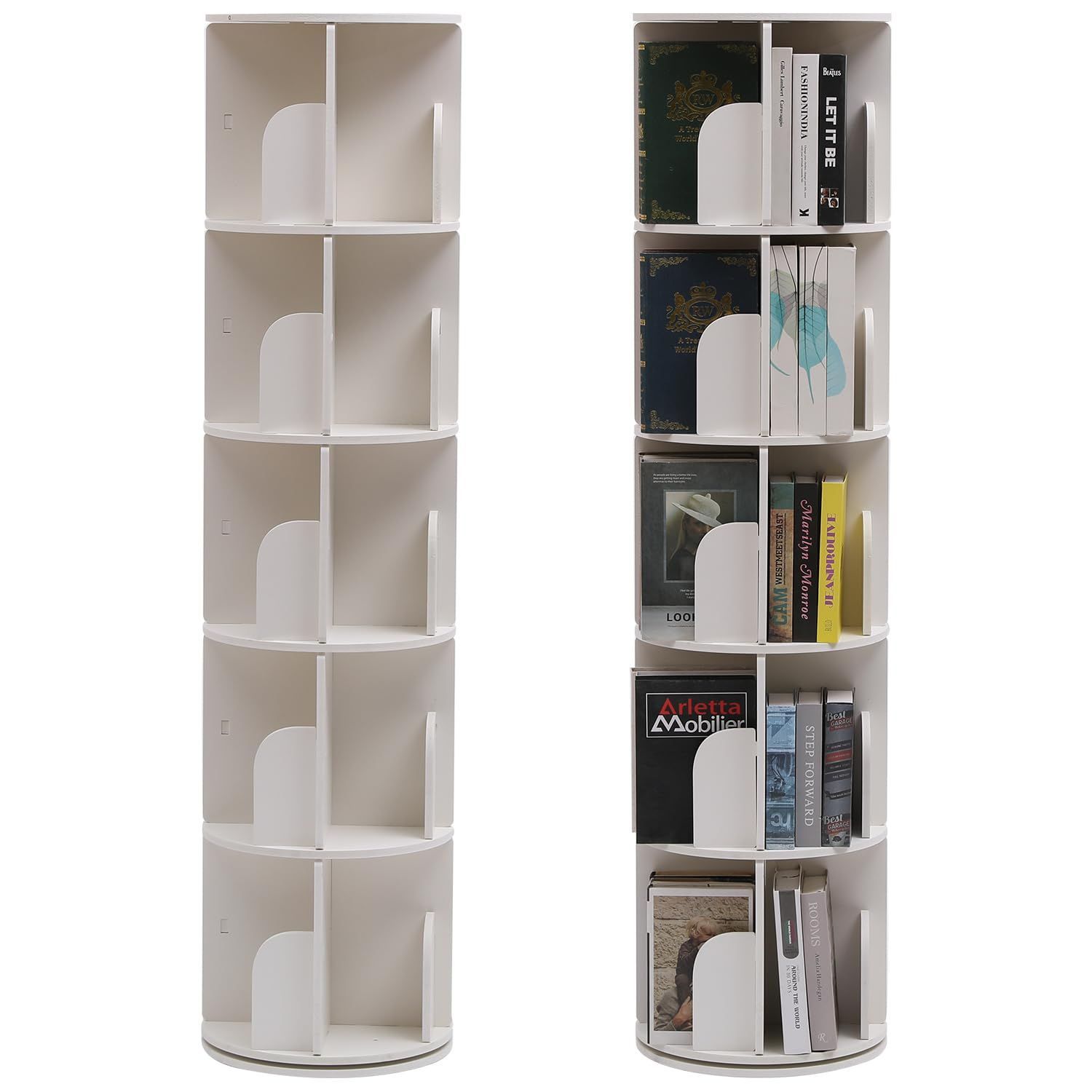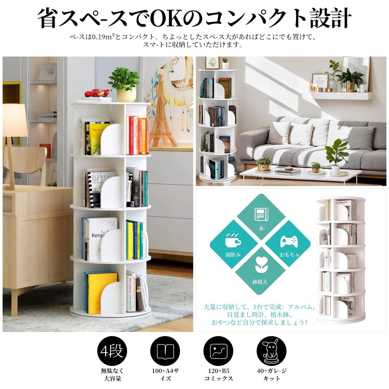 本棚 回転式本棚 大容量 絵本棚 スリム コミックラック 漫画 収納 組立簡単 絵本棚 回転ラック ブックシェルフ 収納棚 CD/DVDラック (ホワイト 5段)