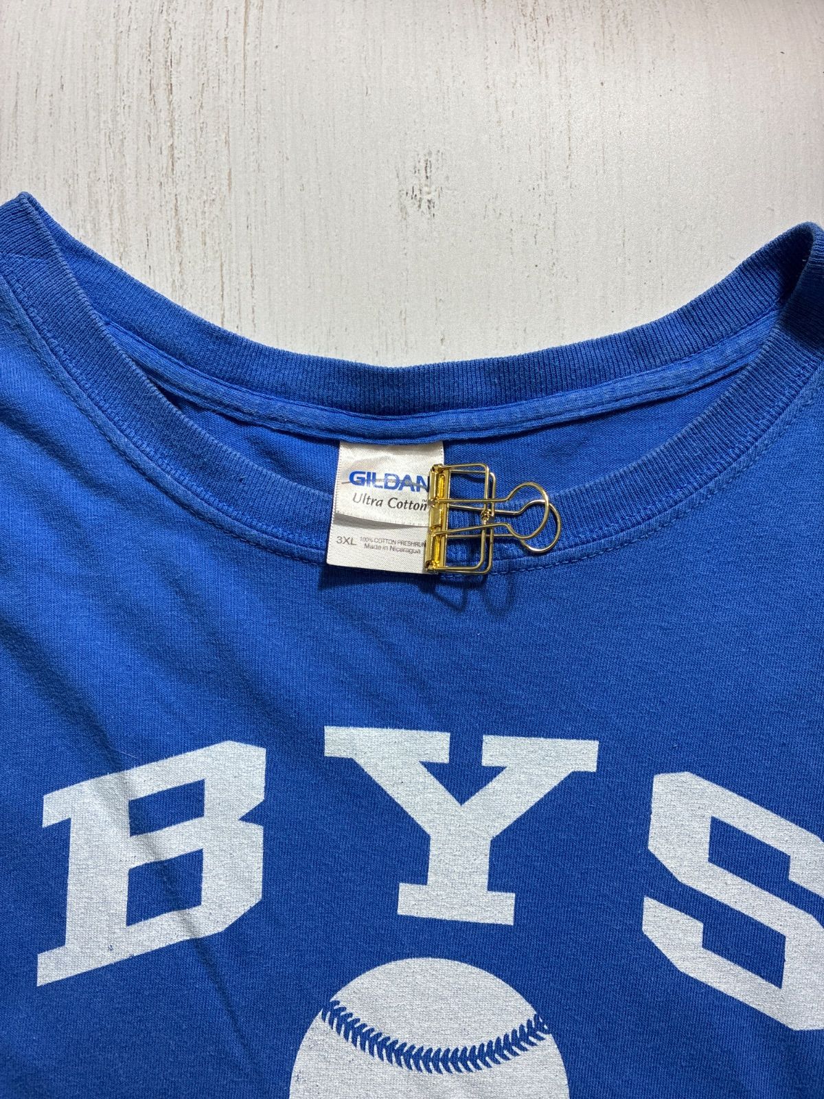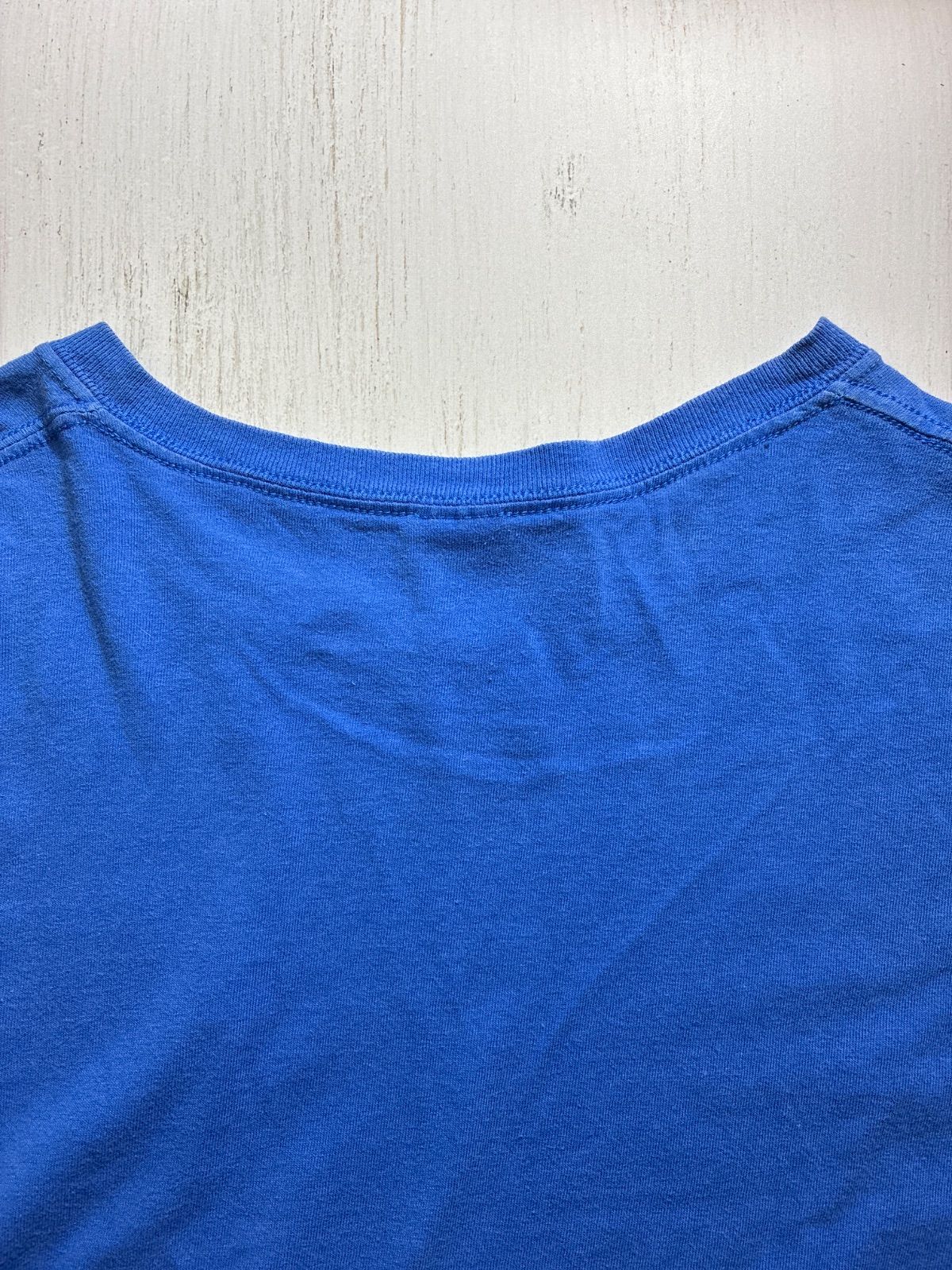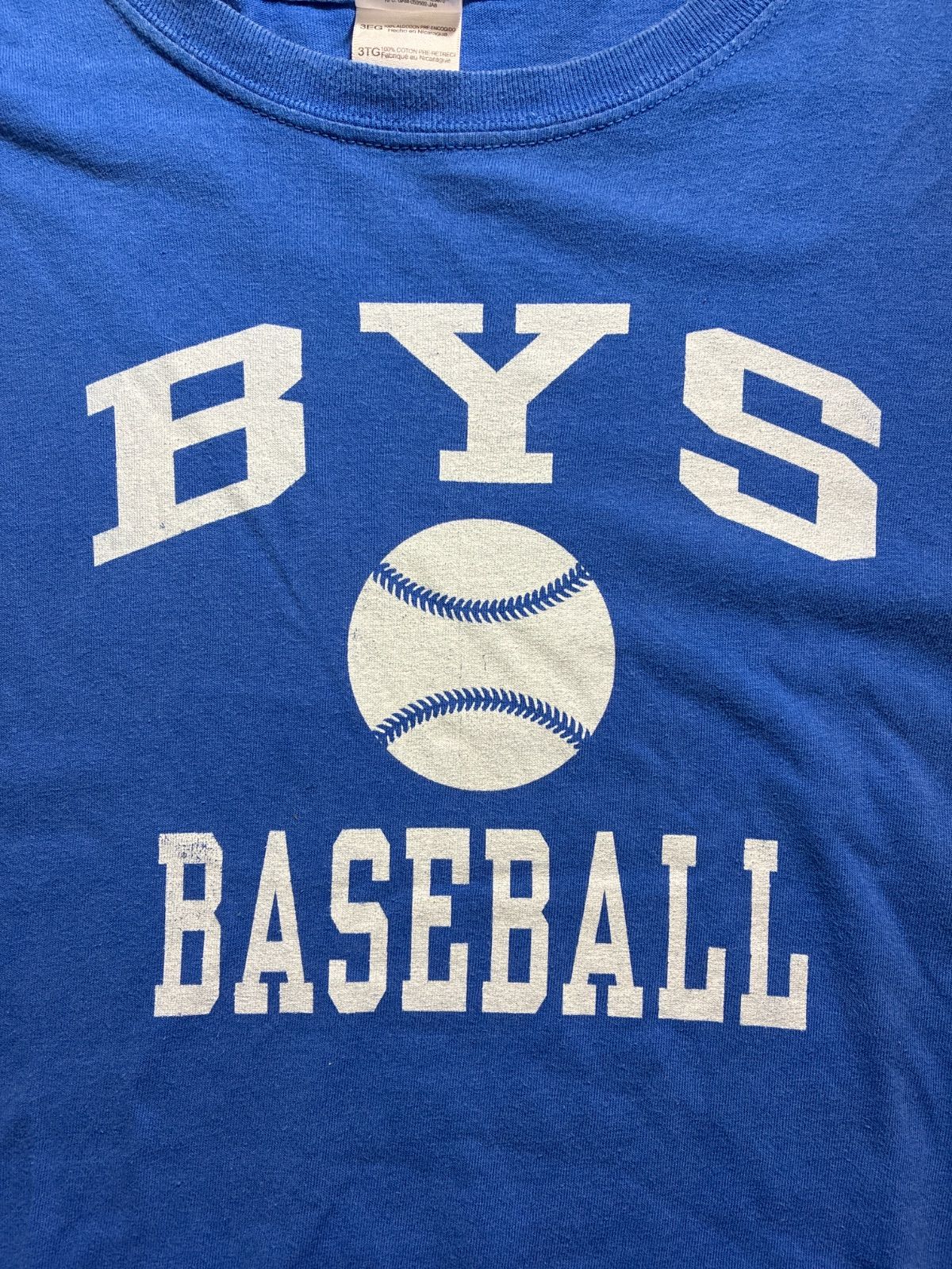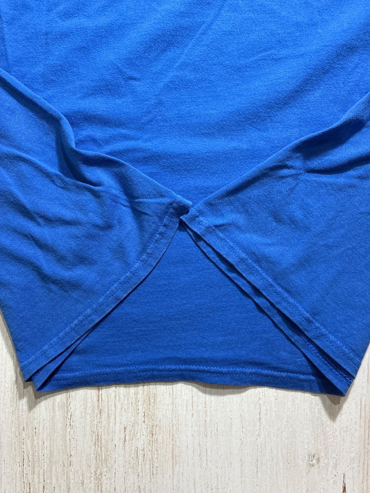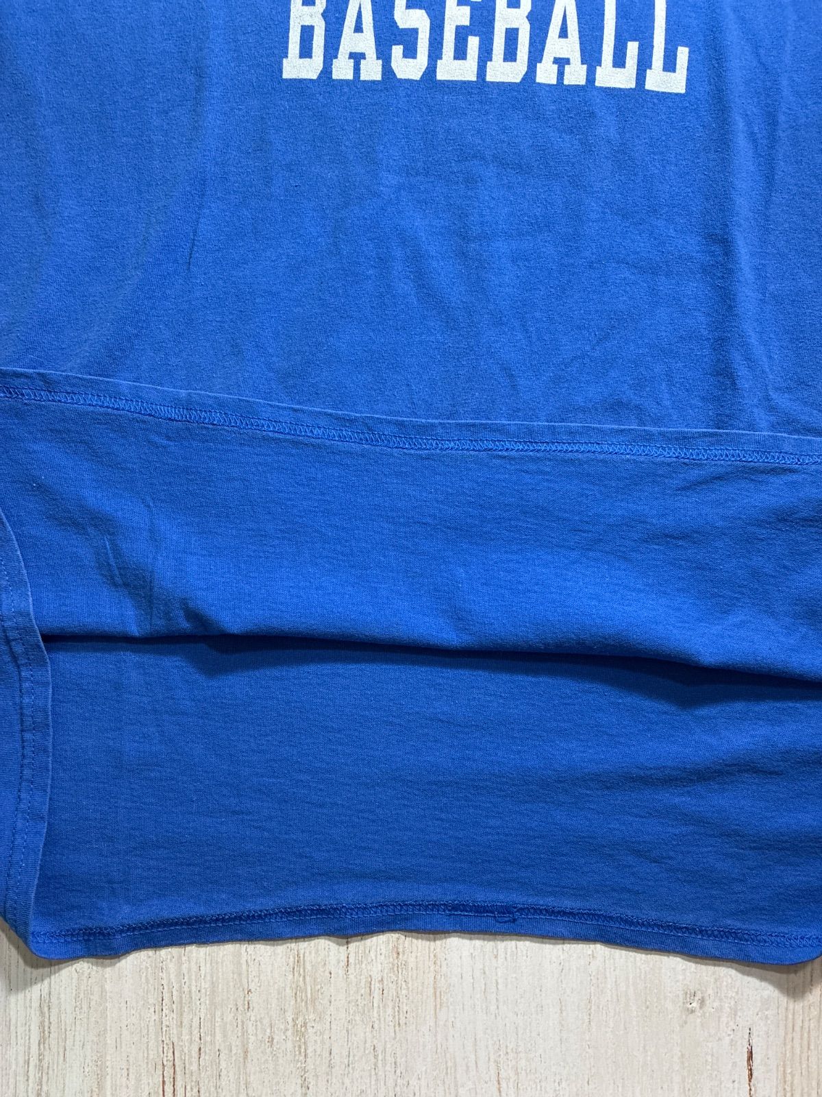 ・パッと目を惹く鮮やかなロイヤルブルーのボディに、王道のカレッジ風アーチロゴとベースボールのデザインがプリントされた、アメカジ好きにはたまらない一枚です。