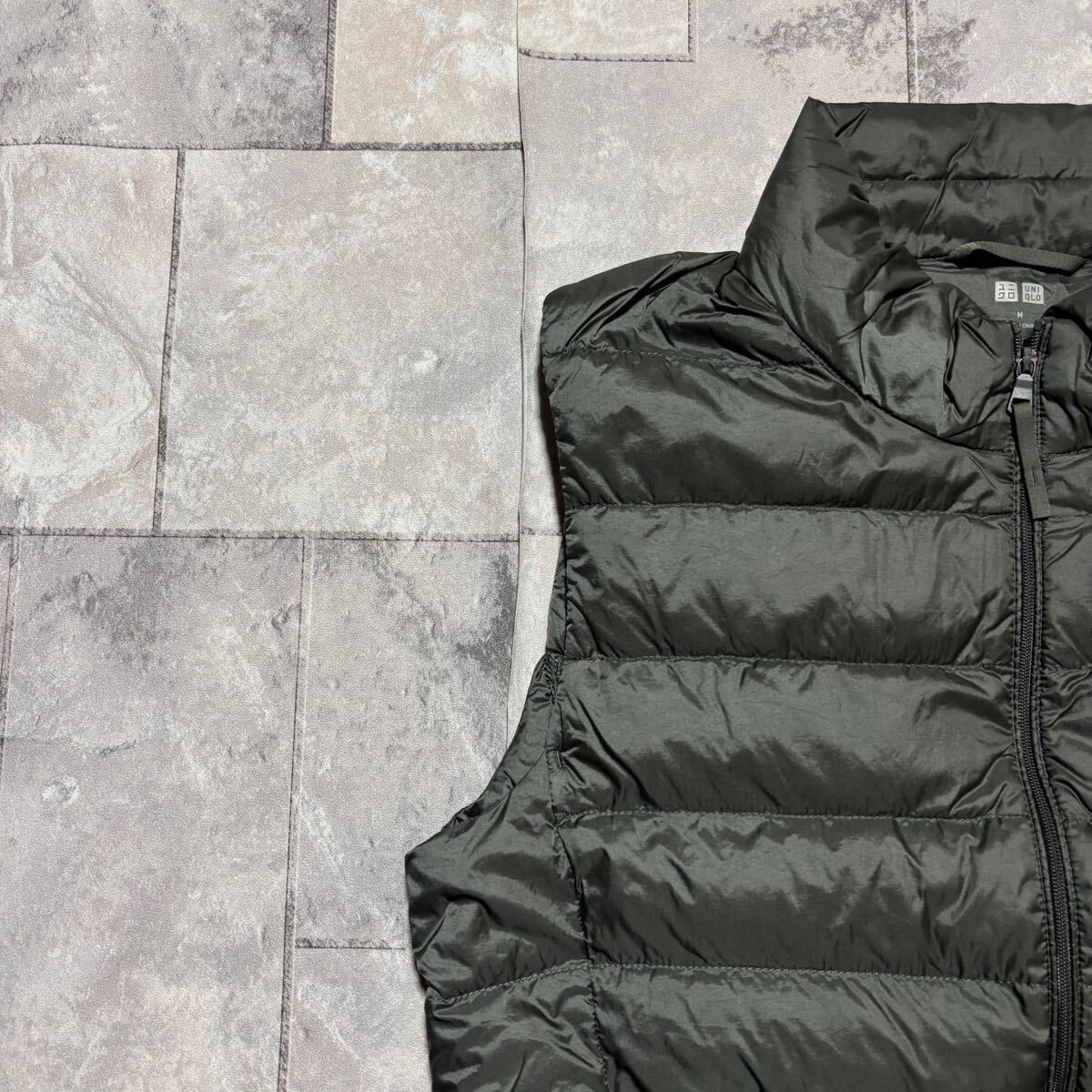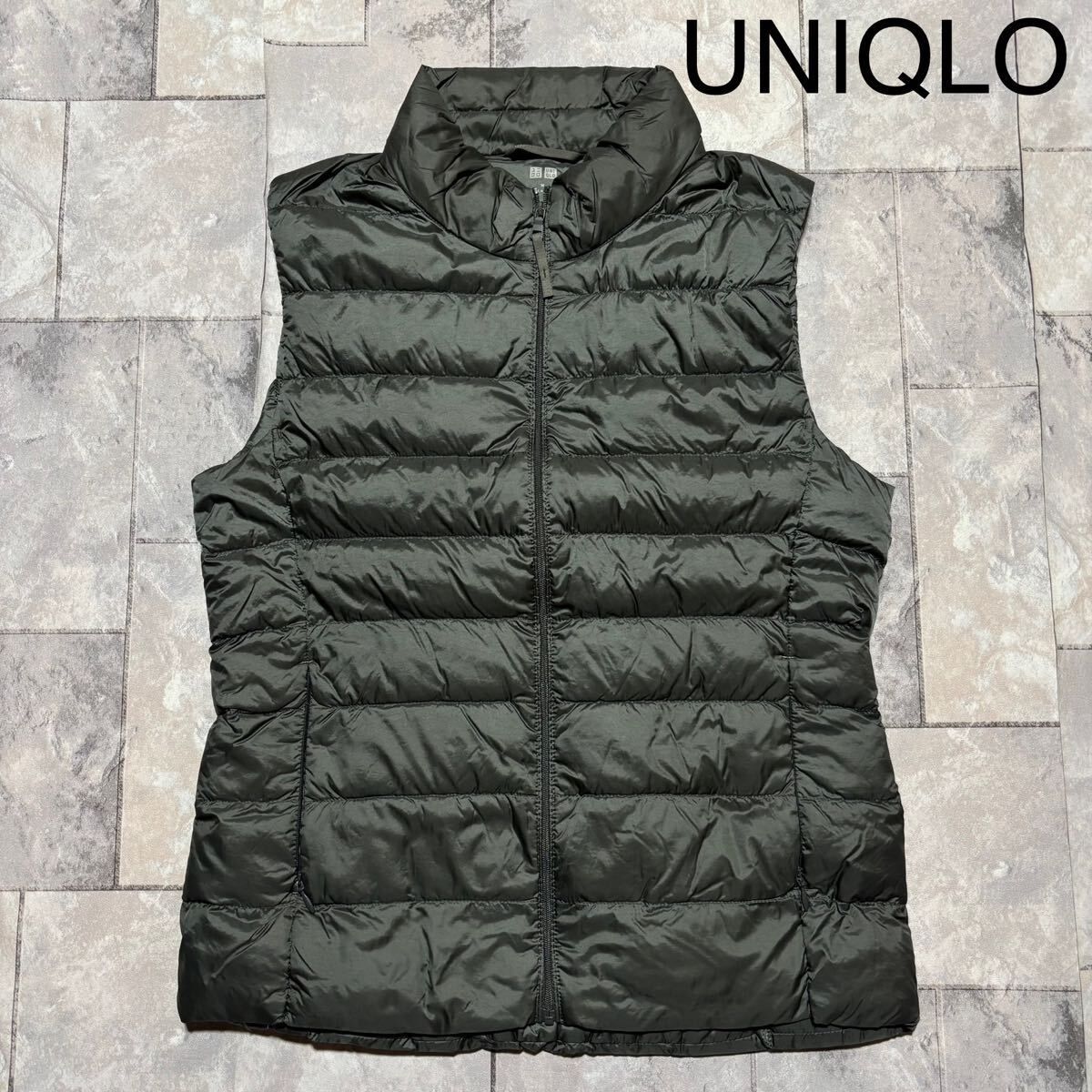 UNIQLO ユニクロ ダウンベスト ナイロン 軽量 薄手 ジップアップジャンパー オリーブ レディース サイズM 玉FS1634