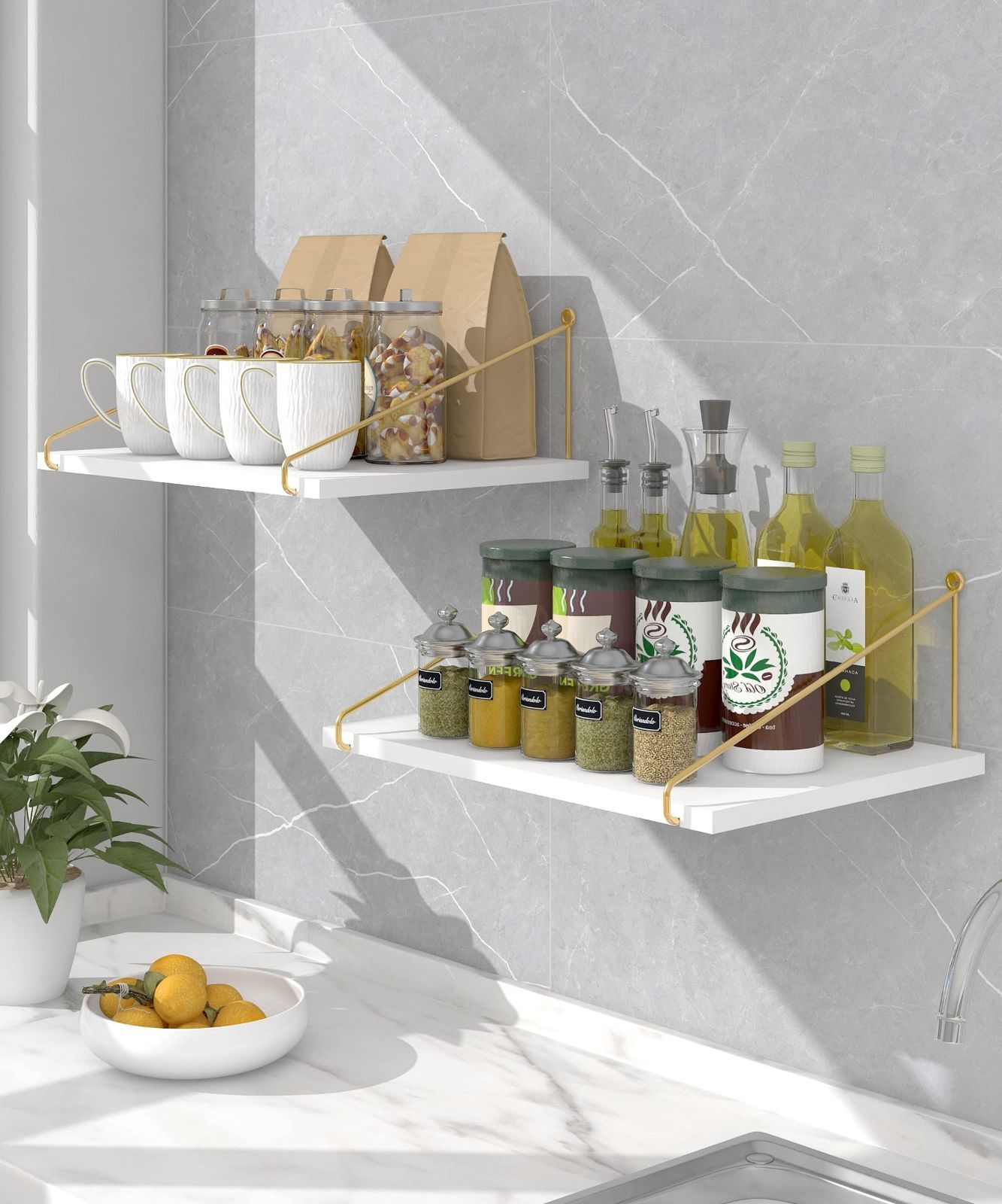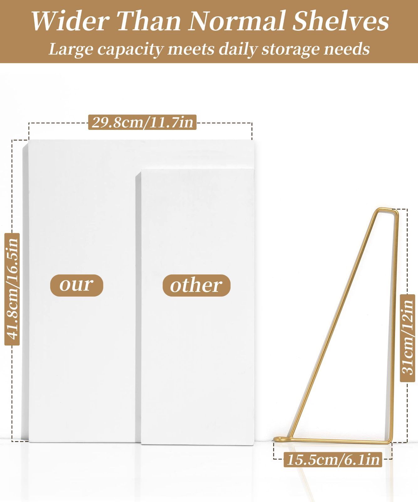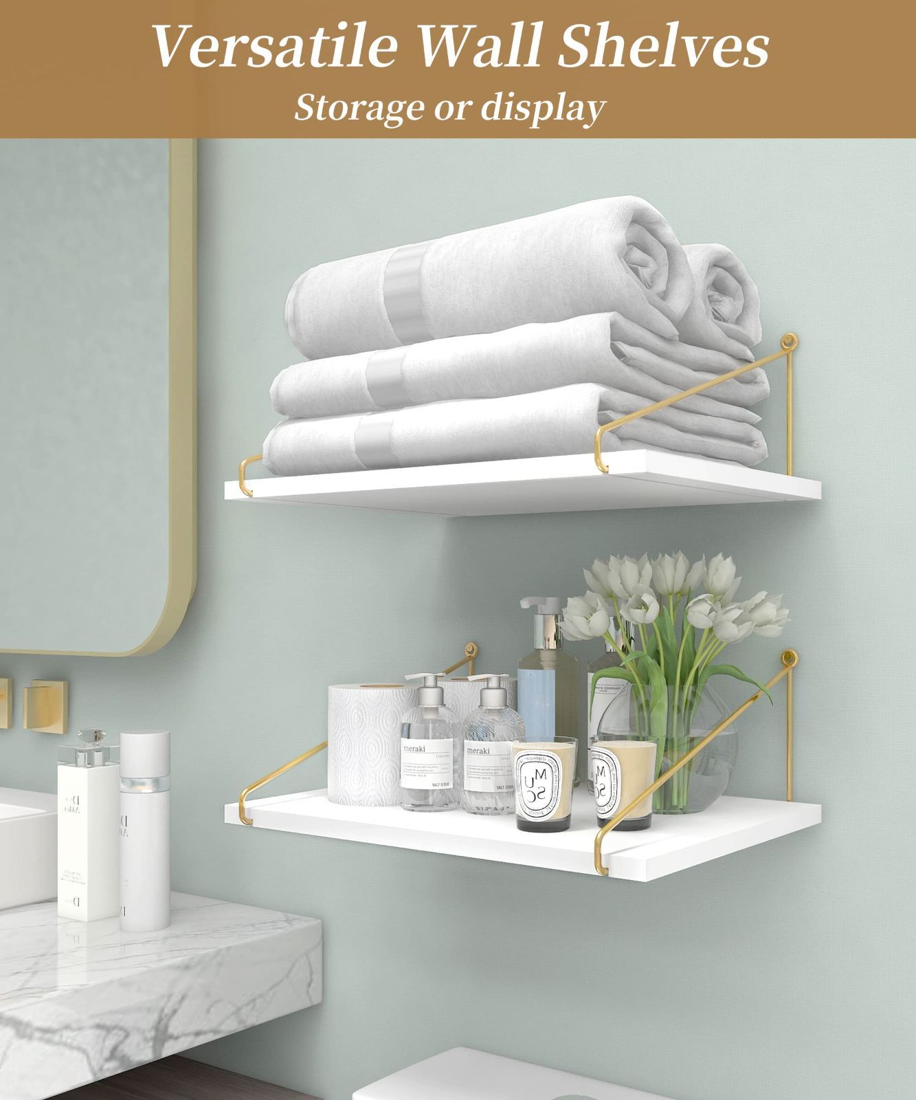 より多くの収納スペースを生み出す幅広のフローティング棚は