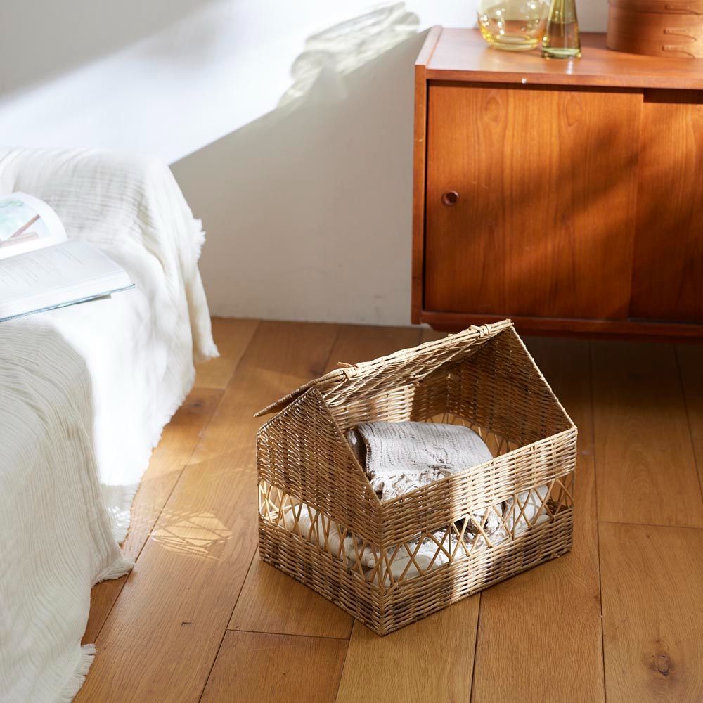 おしゃれで楽しいハウス型の収納バスケット。軽量で洗えるPP素材を使用しているので、お手入れも簡単です。子供のおもちゃ入れやペットグッズの収納、または日用品の整理にもぴったりです。軽くて扱いやすく、どんな部屋にも馴染むシンプルながらも遊び心のあるデザインが特徴。屋根部分の蓋は全開できるので、物の出し入れが簡単で使い勝手も抜群、機能性とデザイン性を兼ね備えたアイテムです。お手入れが簡単で、長く使えるこの収納バスケットで、整理整頓も楽しくなります。