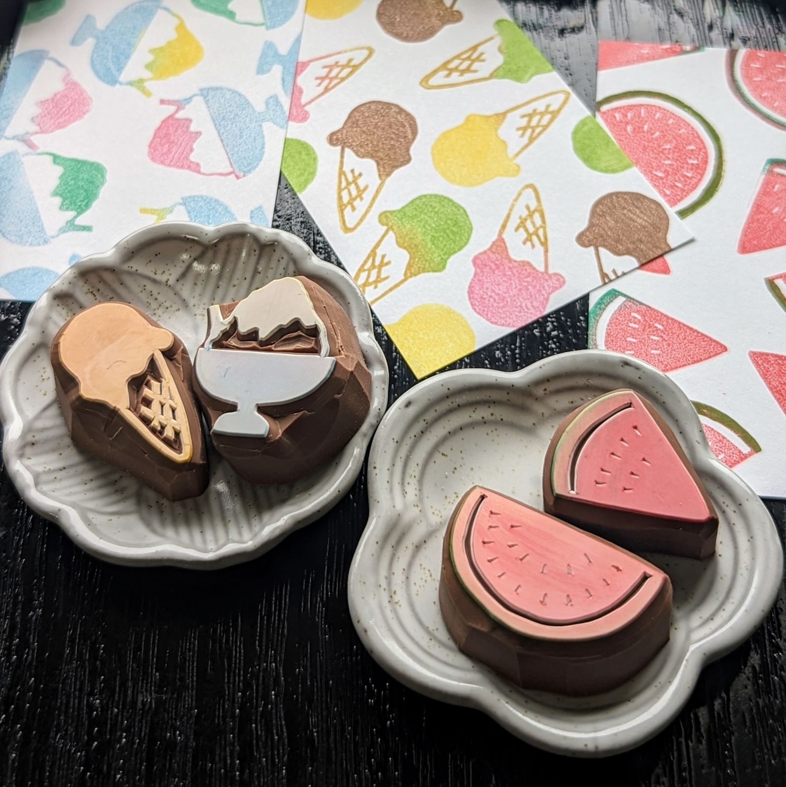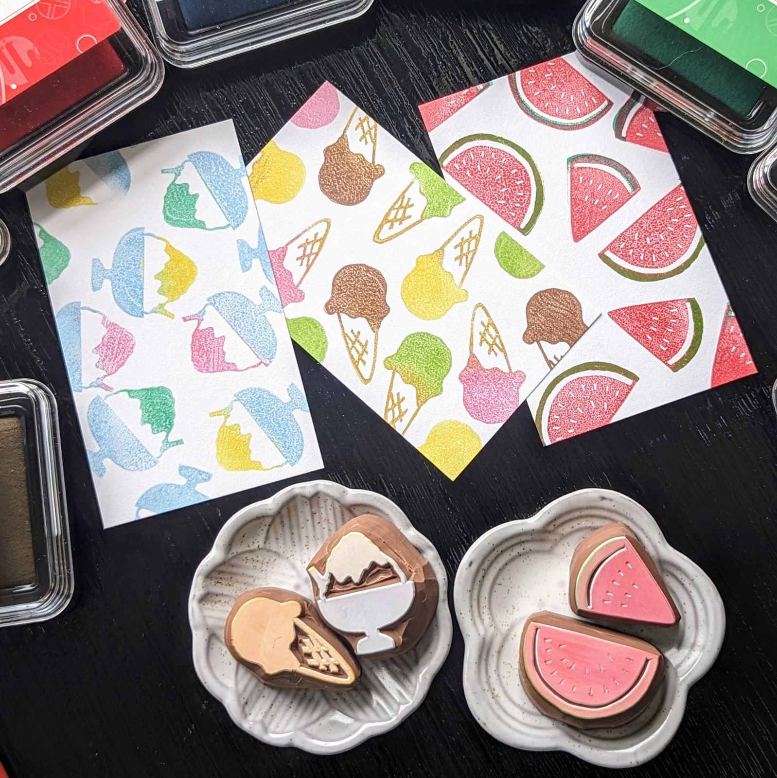 色分けや重ね押しで味やシロップのニュアンスも表現でき、にぎやかな夏らしさが広がります。