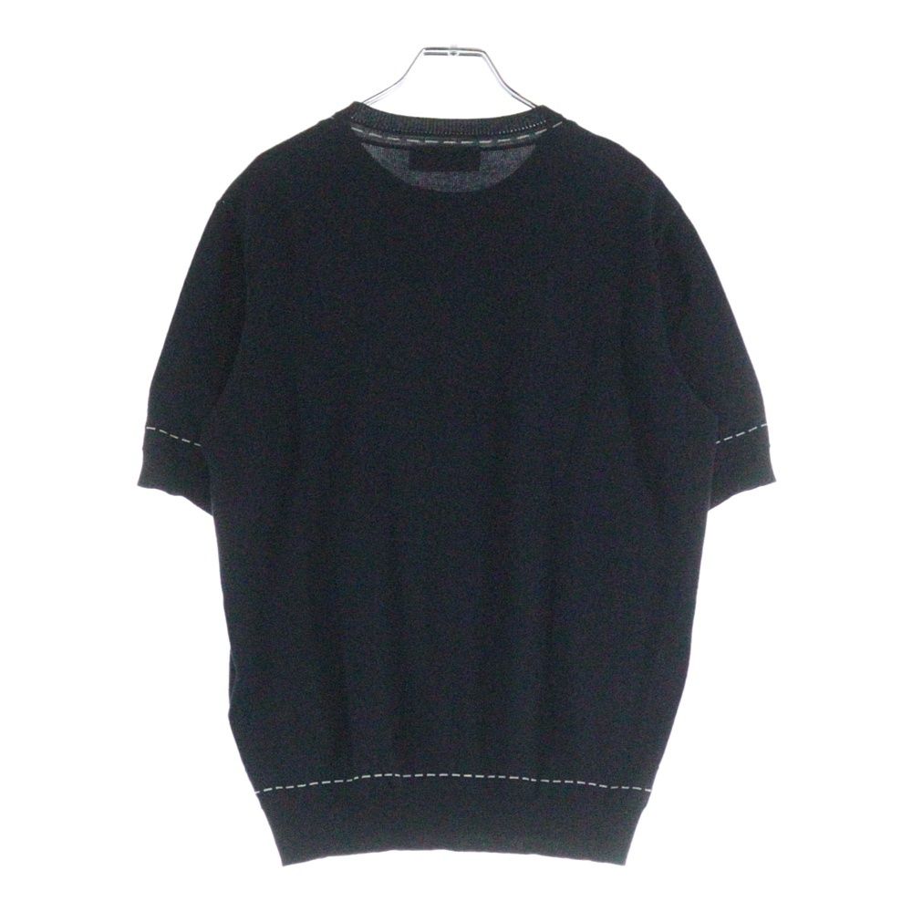 【品名】ステッチプリント クルーネック半袖ニットカットソー レディース ブラック FZE004 AR8D