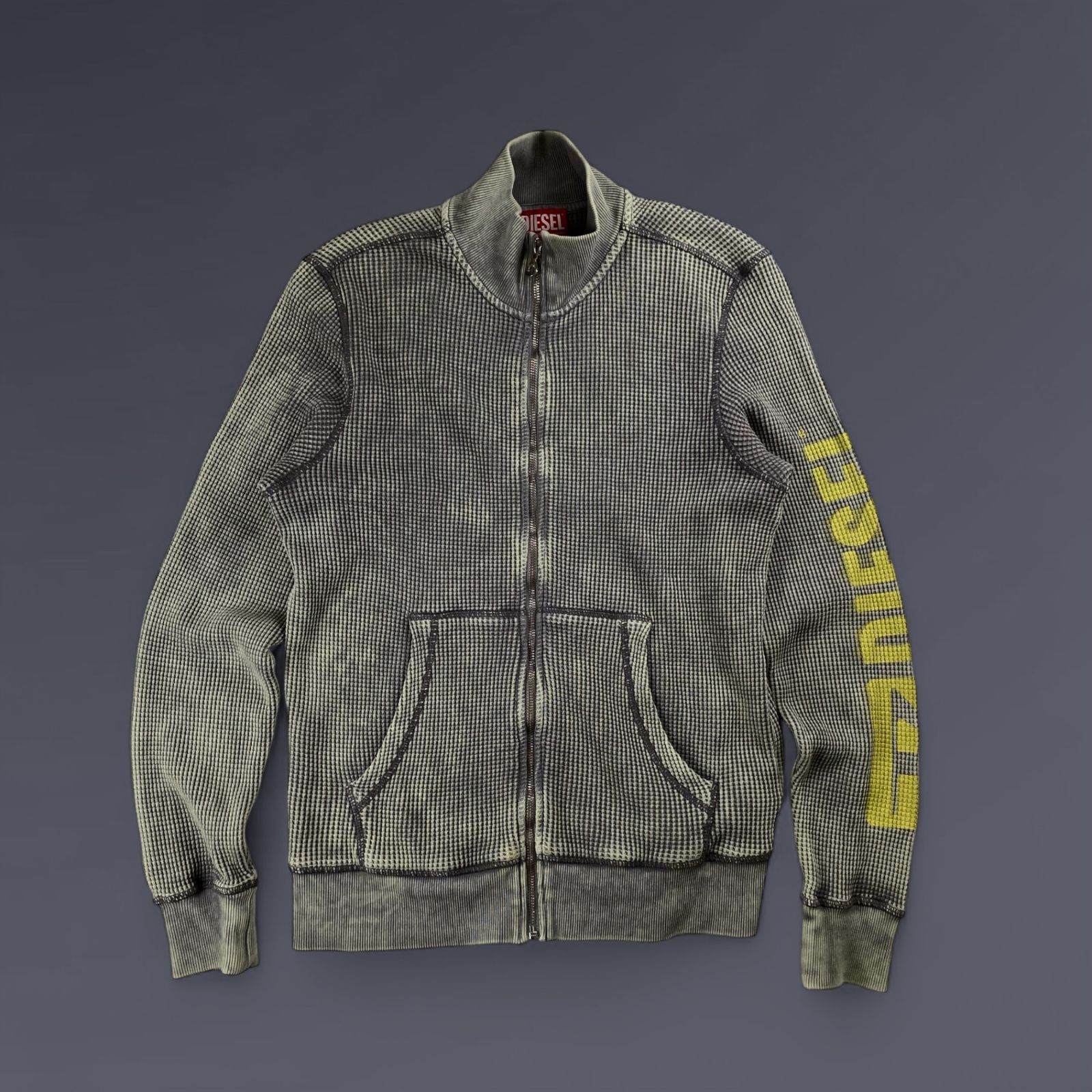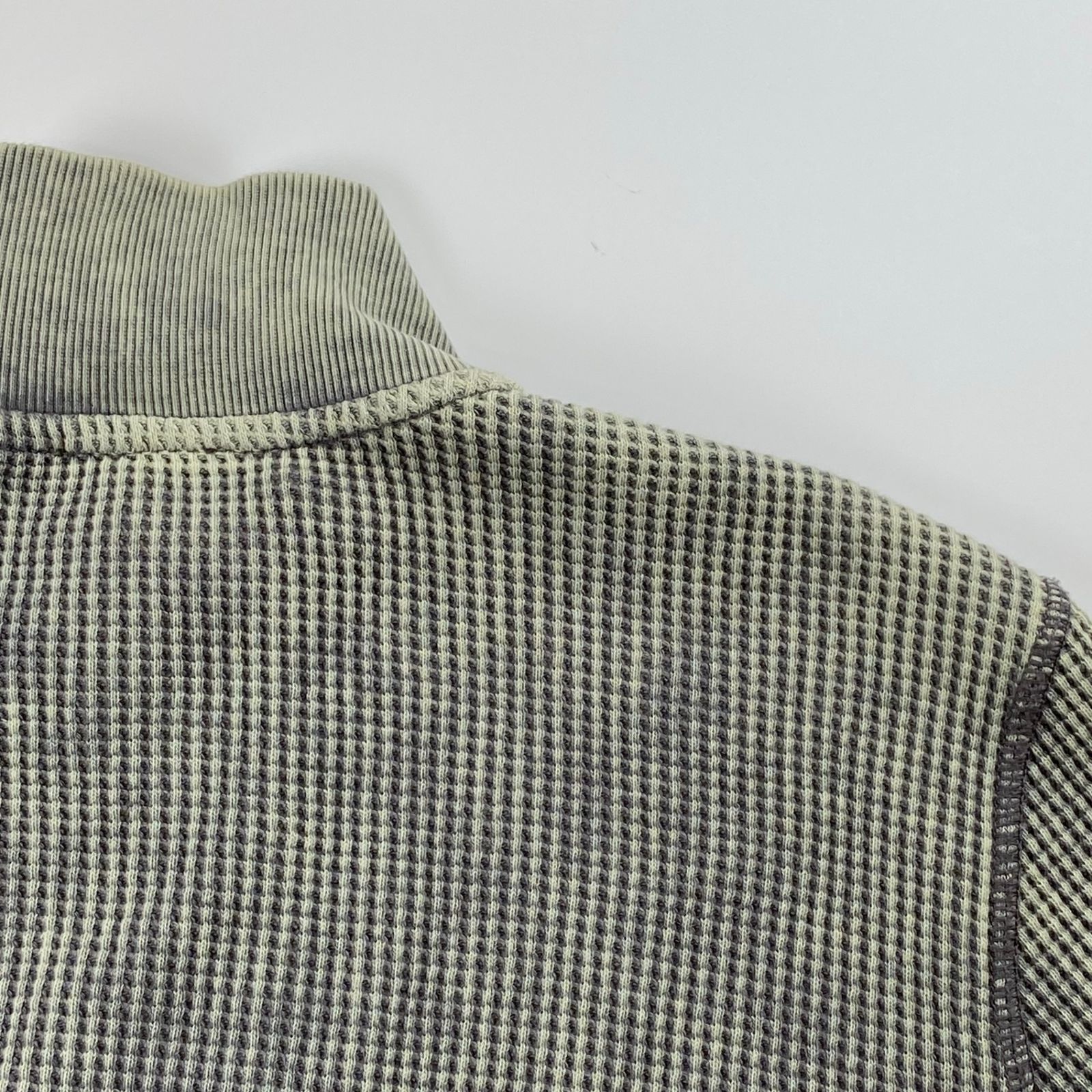スタッフコメント:24SSのワッフルジップアップジャケット。ワッフル生地でムラ感のある染色がトレンドの一着。