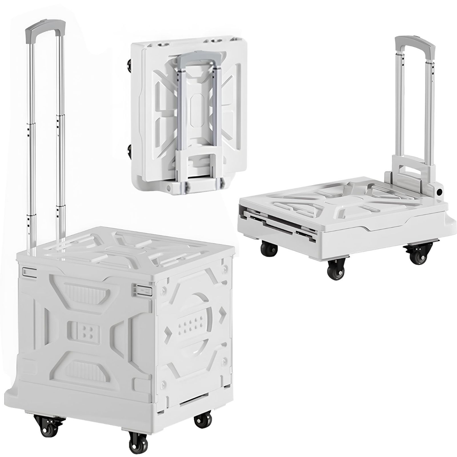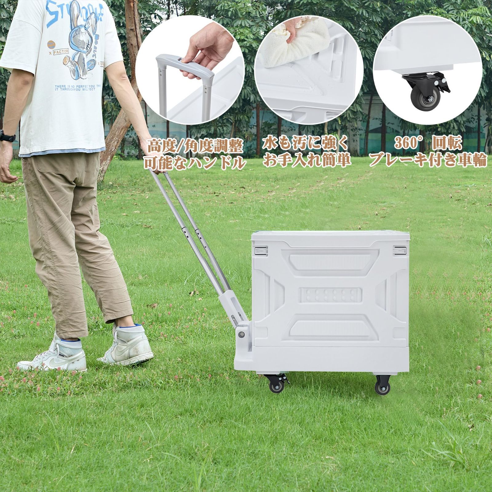 [VECELO] キャリーカート 折りたたみキャリーカート ショッピングカート コンテナキャリー 買い物カート 台車 蓋付き アウトドア キャンプ用 携帯便利 座れる コンパクト 大容量 簡単組立て 軽量 4輪 ホワイト