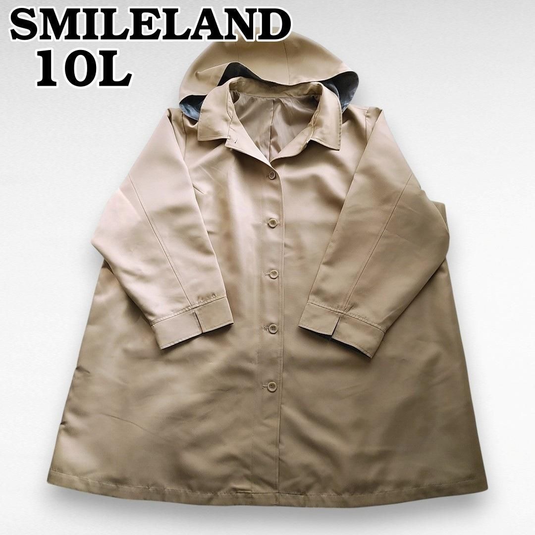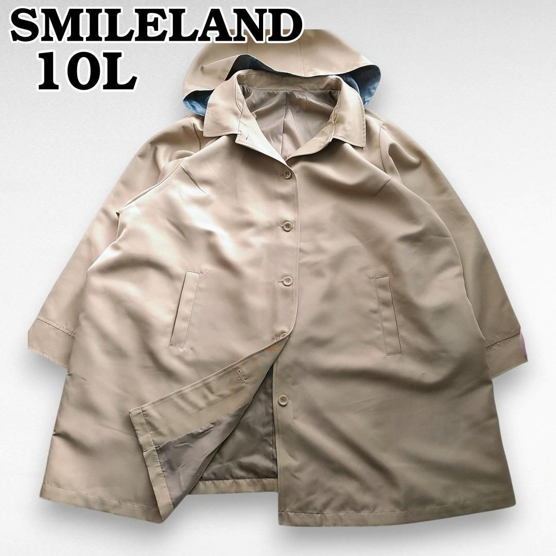 極美品 大きいサイズ10L ニッセン SMILELAND 撥水フード付ステンカラーコート ベージュ スプリングコート スマイルランド 241022-01